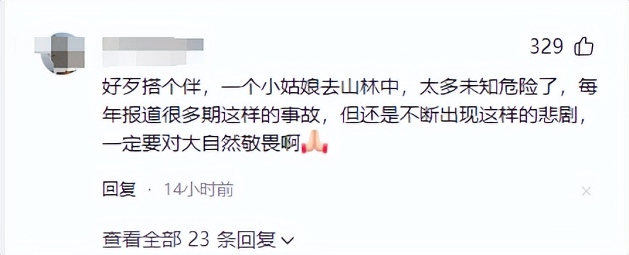 有网友表示感叹:“女生才20岁, 真是太可惜了,我们要对大自然有敬畏之心,生命真的好渺小。”