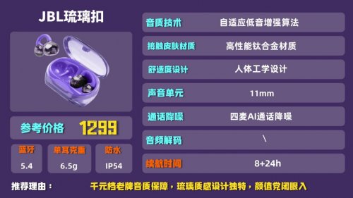 品牌简介:JBL是知名的音频品牌,在声学领域沉淀多年,这款琉璃扣是2025年10月推出的新款,主打时尚外观和开放聆听体验,兼顾了装饰性和实用性。