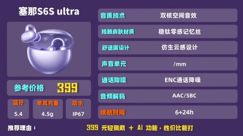 品牌简介:塞那这款耳机主打轻量化佩戴,在续航和基础功能上能满足日常需求,适合追求佩戴舒适度的用户。