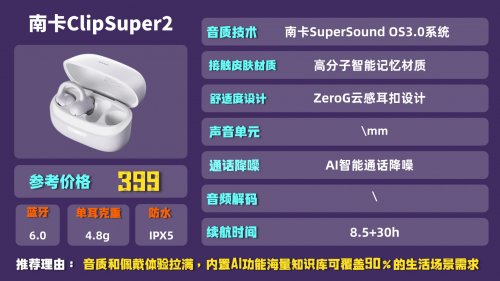 第一款:南卡ClipSuper2耳夹式耳机