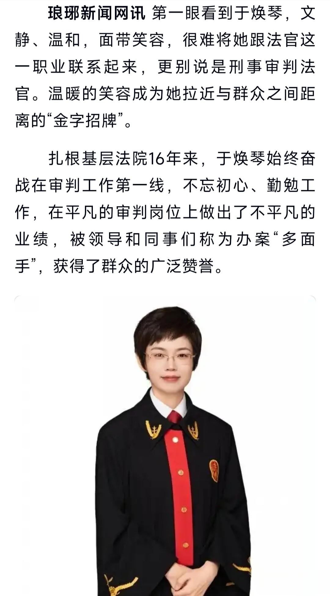 总之,这下于法官算是被推上了风口浪尖上了,果不其然,很快就有网友扒出了于法官的真容,疑似是一位名叫于焕琴的女法官。