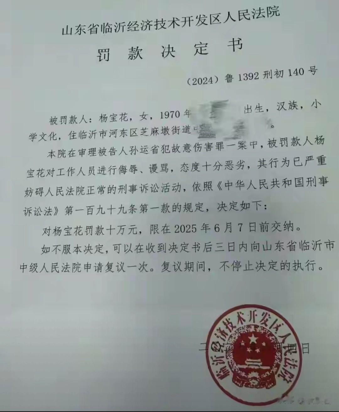 所以,临沂经开区法院必须纠正这个错误的决定。 不仅要退还10万元罚款,更应该向当事人道歉,并对作出这个违法决定的相关人员进行追责。