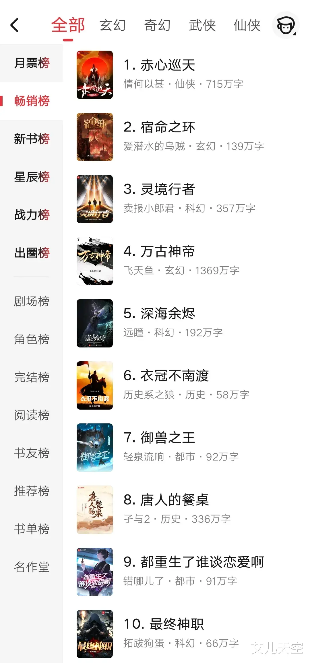 促销活动结束后,前期除了偶尔有黄金盟的万订作品拿下榜一,赤心巡天一直就占据了第一,等到后面成绩提升越来越快,有黄金盟的普通万订作品,也没法撼动赤心的畅销榜榜一地位了。