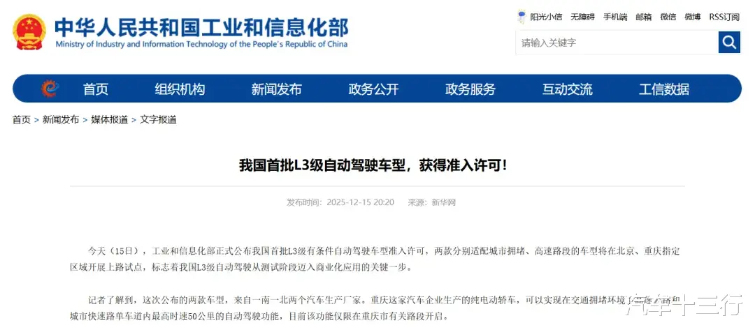 近两年,已有多家主流车企陆续宣布涉足L3级自动驾驶领域。车企扎堆布局的核心逻辑,在于试图以L3为阶梯,循序渐进地攻克自动驾驶场景适配、系统稳定性等核心难题,借助政策破冰与技术迭代抢占市场先机。2025年12月,工信部公布长安深蓝SL03、极狐阿尔法S获我国首批L3级准入许可,更给行业注入强心剂,推动L3从技术测试走向试点落地。