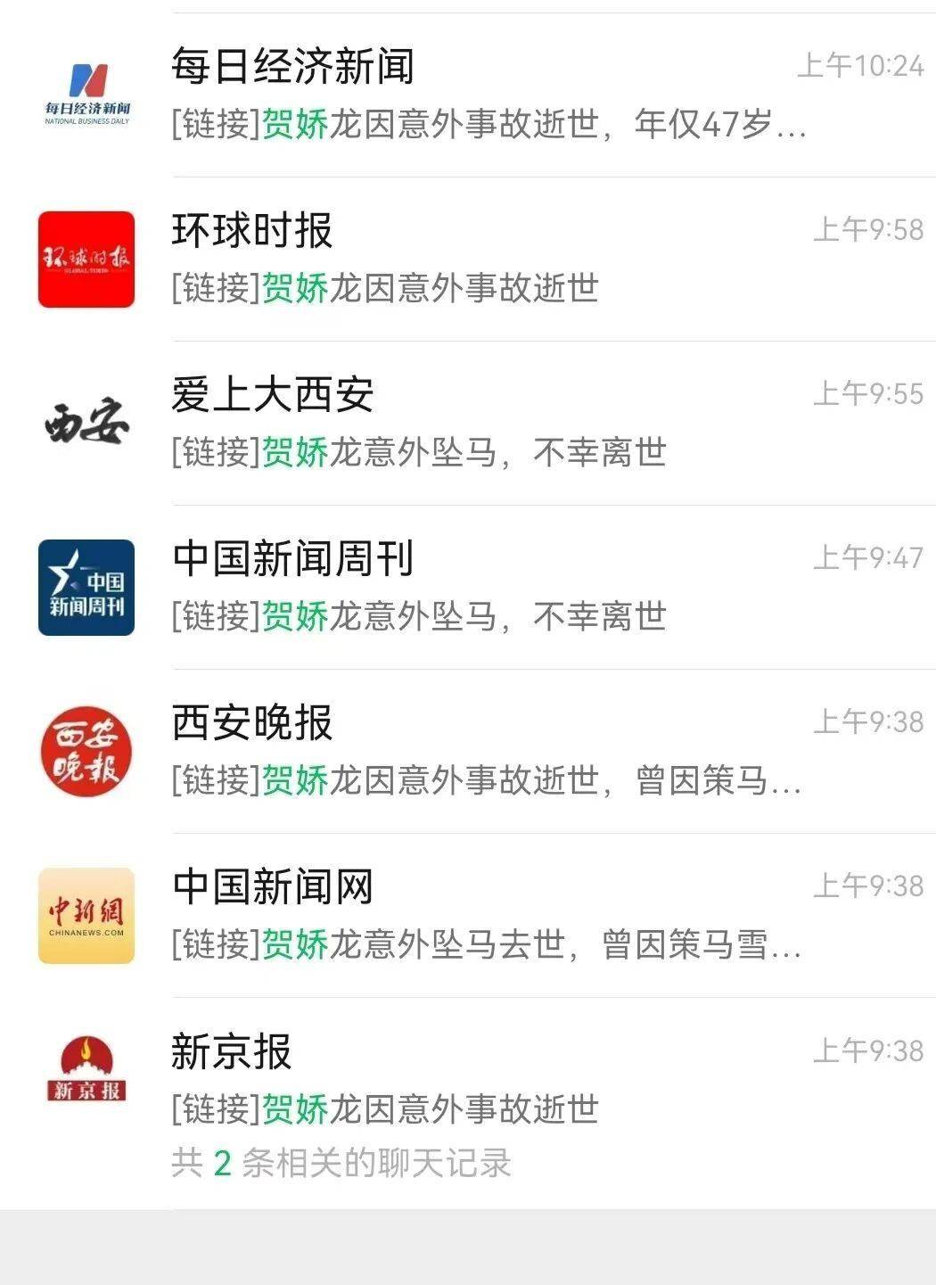 随后,多家国家级、省级、地市级官方媒体对此进行了报道,一时间“贺娇龙因意外坠马逝世”的消息充斥整个网络。没想到,几个小时之后,事件发生了反转。