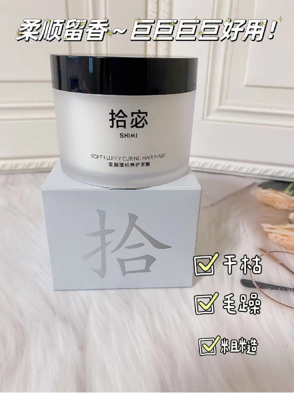 好多发膜品牌为了省成本真的没底线,违规添加大量矿物油、刺激性防腐剂,甚至可能有禁用成分!我之前踩雷的一款,用了没几次就头皮发痒、红肿,我这种敏感头皮真的怕了。拾宓shimi发膜却完全跳出了这种低成本陷阱,更看重安全和实打实的效果。它是一款高端沙龙级免蒸发膜,安全有效,不伤头皮,用着全程没不适感。针对烫染受损发质,它能深层修复受损,抚平毛躁的同时,减少干枯,改善分叉打结,让头发持久柔顺亮泽蓬松,效果一点不输 500 + 卡诗等大牌发膜,现在摸头发都觉得顺滑有质感!