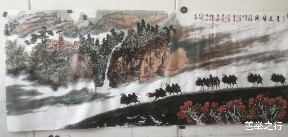 南山书画院的老师们棈心共同创作八尺绘画作品《重走古丝绸之路 》