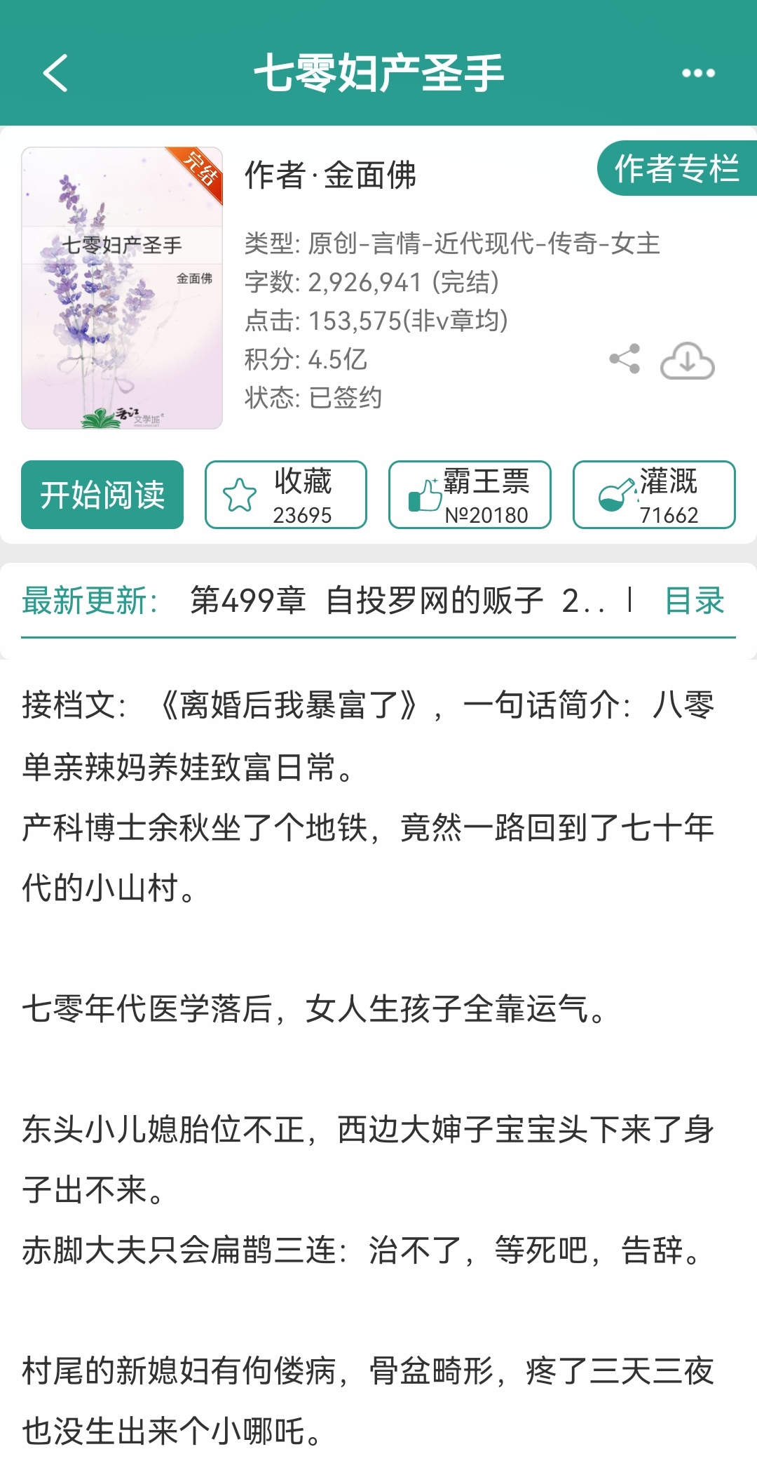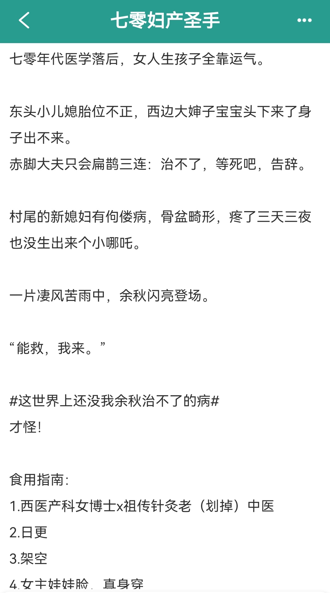 喜欢看长篇的友友们可以入——七零妇产圣手