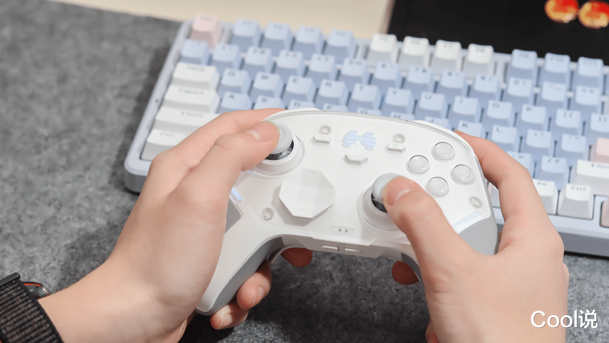 首先就是,北通鲲鹏40御铠白在这个价位(399)硬件上非常“能打”,除了搭载了首创得双限位阻尼可调TMR摇杆之外,还配置了光轴按键3.0、AI语音2.0、AI记忆面壳等行业创新技术,不管是硬件还是智能方面都走在了行业前列。
