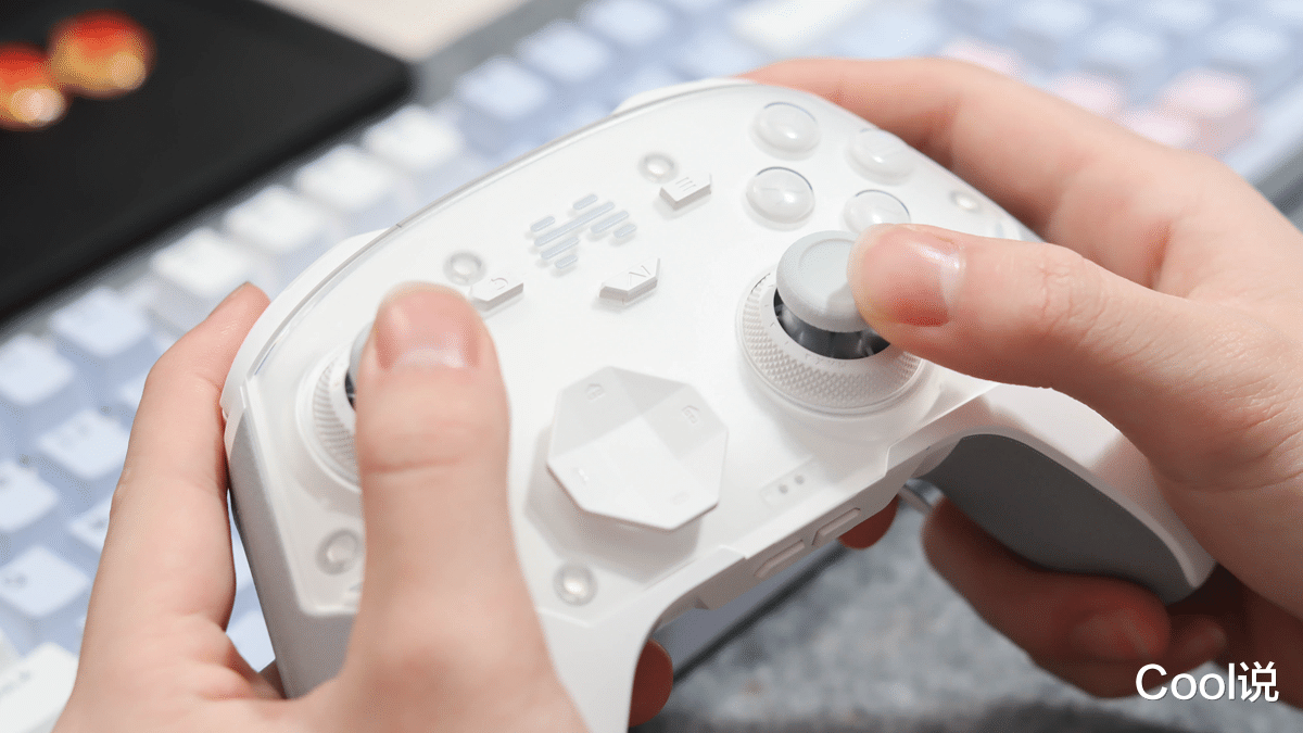 再就是,ABXY采用了电竞专用的光轴按键3.0,0.25mm超短键程触发更加迅速,而且还有着8000万次的按压寿命,格斗游戏中的连招触发如行云流水,无接触式光学触发按键回弹清脆。背键支持宏编程,一键释放复杂操作,加上清脆微动小肩键,大幅提升竞技效率和舒适手感的同时,比对手出招快3倍。