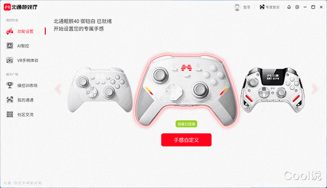 北通智控软件6.0非常的强大,除了可以对摇杆灵敏度、扳机行程、宏按键调节,还支持灯效自定义,可以说智控和手感都能自由设置,打造专属视觉风格。
