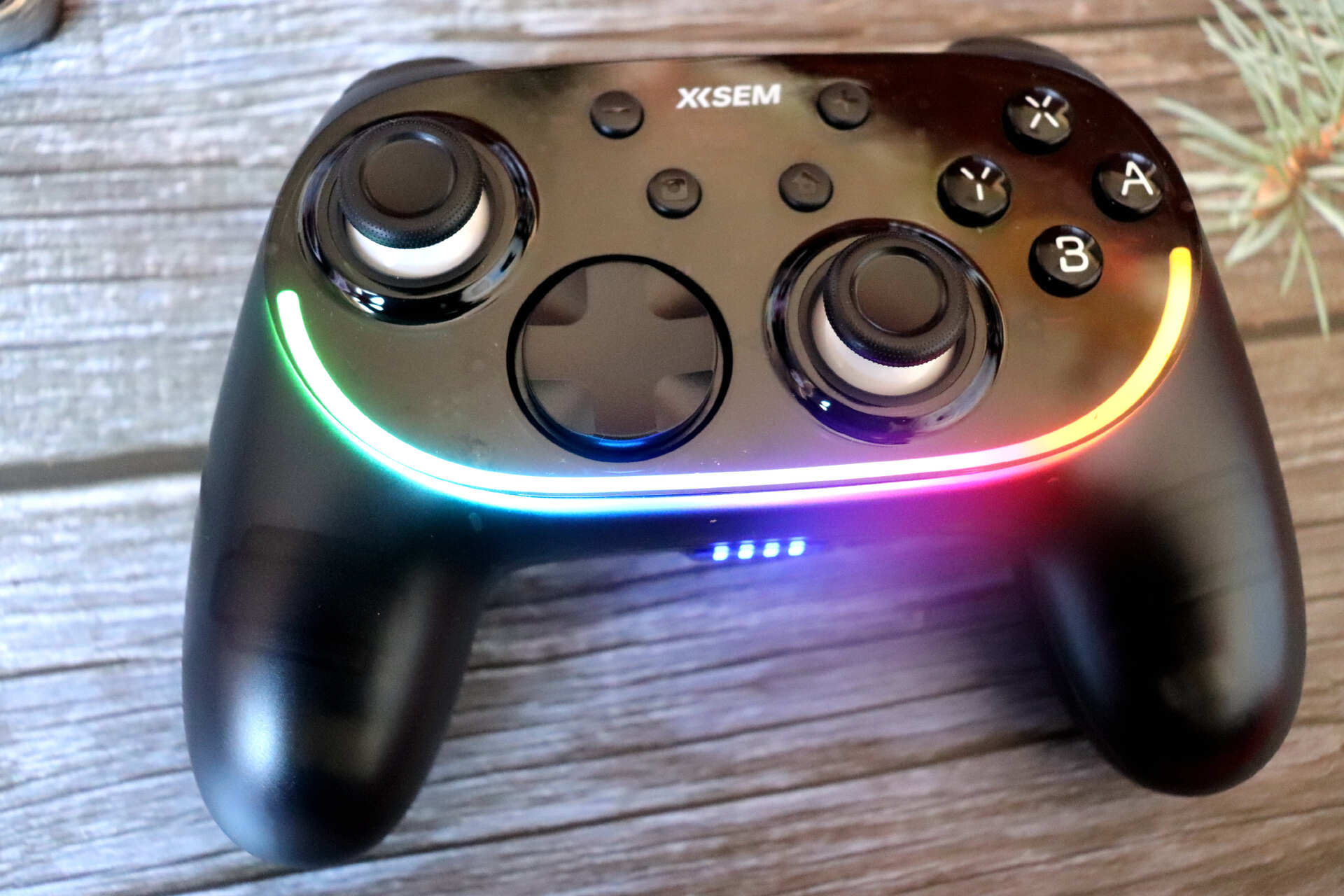 手柄和传统的游戏手柄没有任何区别,都是对称式设计,弧度较大的“U”形,尺寸为长158mm、宽105mm、厚62mm。西圣GC1游戏手柄目前主要有两种颜色可选:黑色和半透明幻雾晶透,内置RGB炫酷氛围灯带,支持10种RGB氛围,握持部采用15°科学握角,贴合手型,稳固舒适。214g,轻量化设计,长时间握持游戏不累。NanoSkin亲肤防滑涂层,防滑防汗。