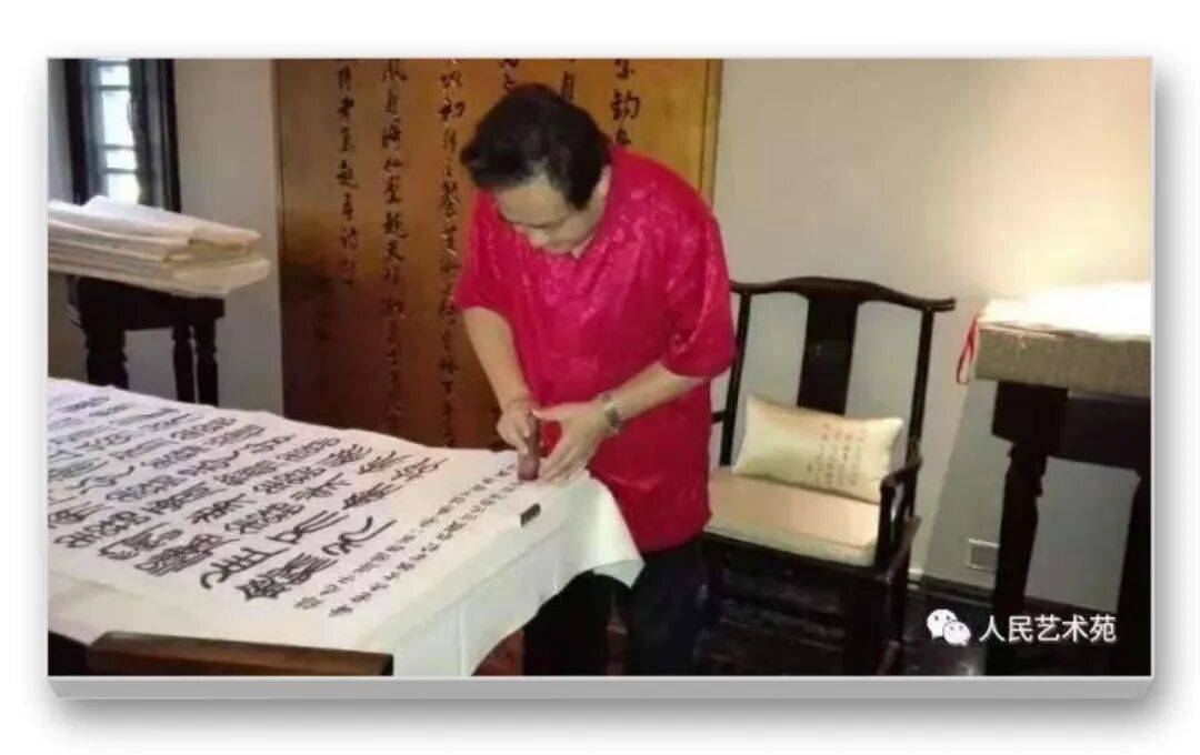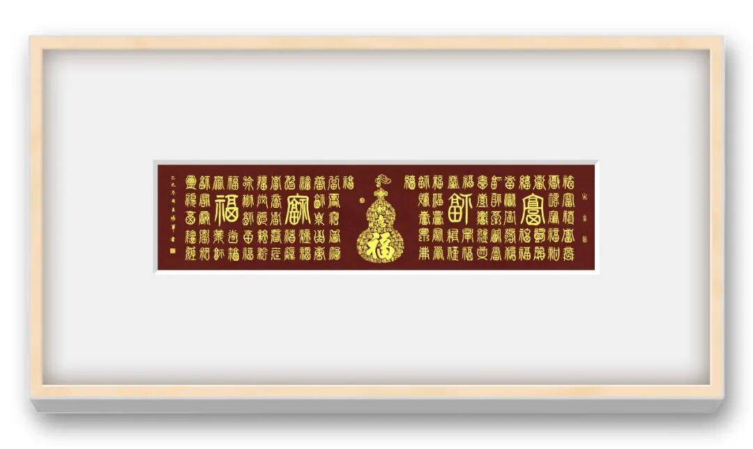 笔墨之间,藏着书家的匠心与巧思,而墨色的运用,更彰显着王海军老师对书法艺术的深刻体悟。他的篆书作品,墨色运用极具匠心,浓淡枯润相生,或如乌云蔽日,厚重沉凝;或如薄雾轻烟,空灵飘逸;或如春雨润物,细腻绵长,如“纤纤若新月之初天涯,落落犹众星之列河汉”,让静态的篆书焕发出灵动的生命力。巨幅铁线篆作品,他能一气呵成,线条圆劲如丝绵绕铁,弯钩优雅韵致匀净,既见“瘦体雄风力万钧”的刚健,又含婉转流畅的柔媚,被专家盛赞“刚柔相济,神来之笔”,将篆书的庄重与灵动、古朴与典雅展现得淋漓尽致。