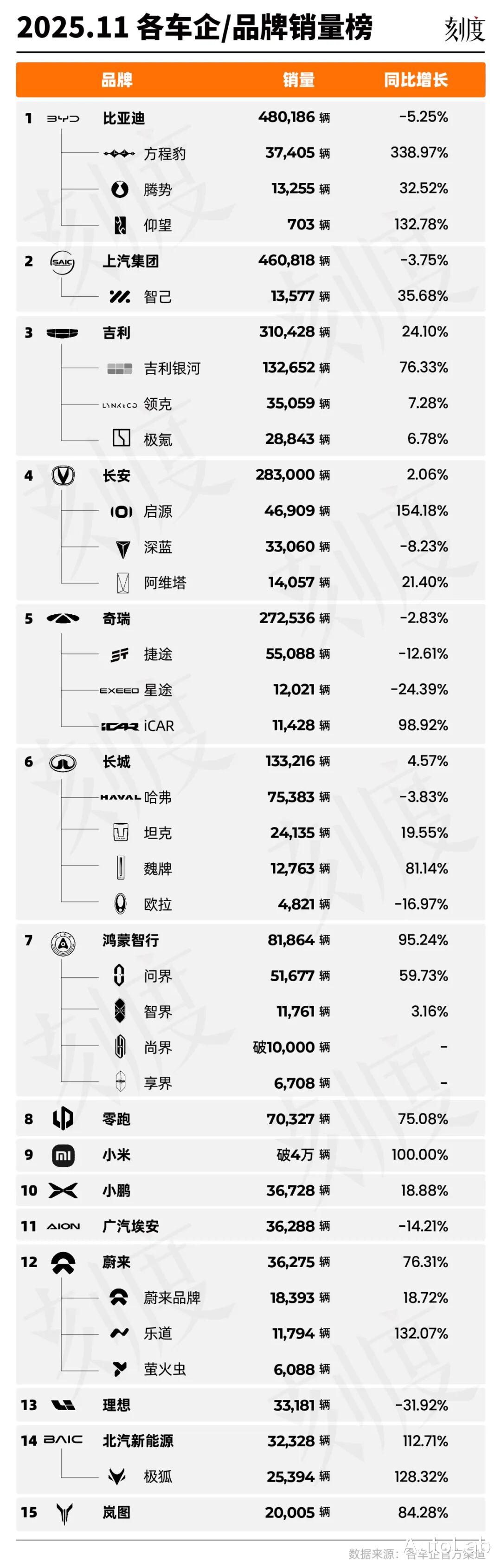 我们照例为大家整理了11月各大车企/品牌的整体表现,跟大家一起回顾下11月车市的精彩看点。