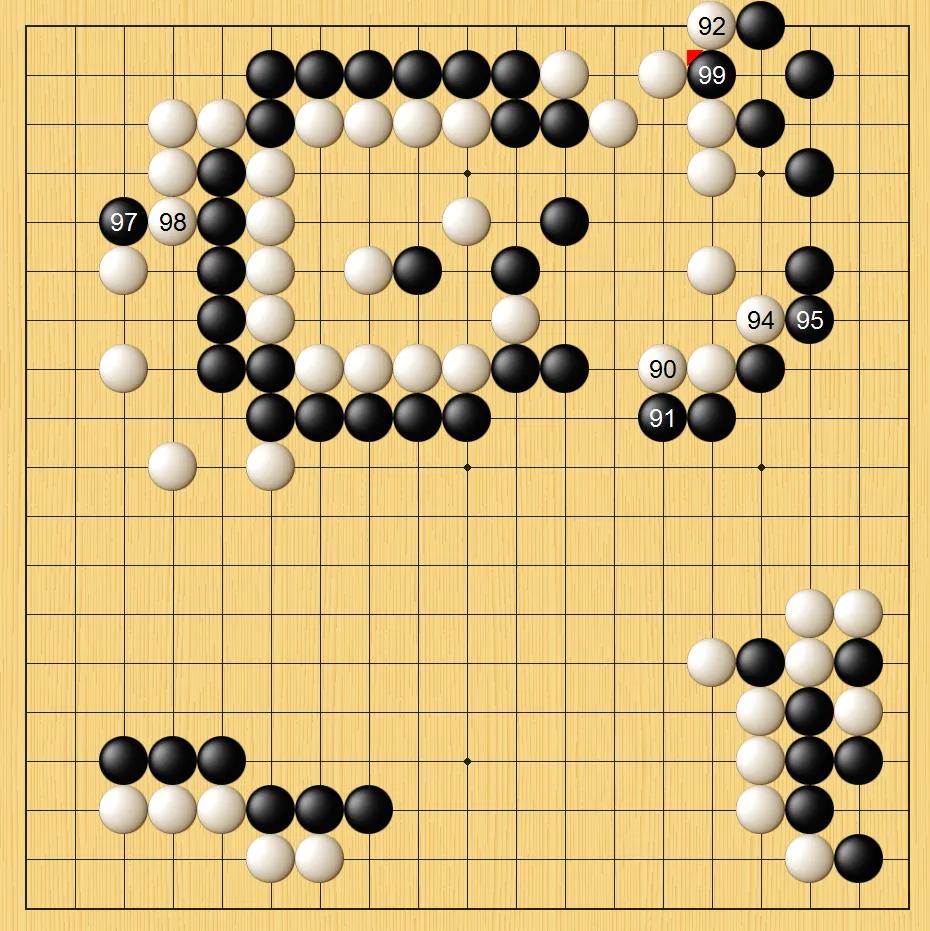 黑棋第91手后,白棋第92手选择开劫导致随后局面被动。黑棋胜率很快上升到90%以上。