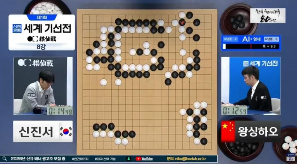 到第259手,申真谞中盘认输,王星昊就此战胜对手,与队友党毅飞携手晋级半决赛。