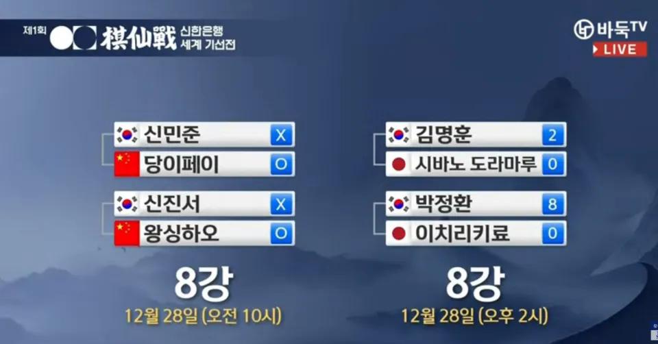 本次赛事,王星昊第一轮战胜金志锡,第二轮胜朴珉奎。申真谞第一轮胜李轩豪,第二轮战胜中国等级分第一人丁浩。