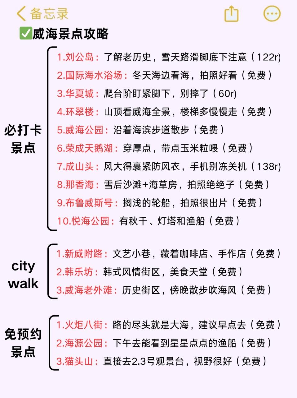 ‼️去景点之前一定要提前了解一下开放时间⏰,不然就会白跑一趟,像刘公岛、华夏城、成头山⛰️这些景点都是需要提前🐟约的!