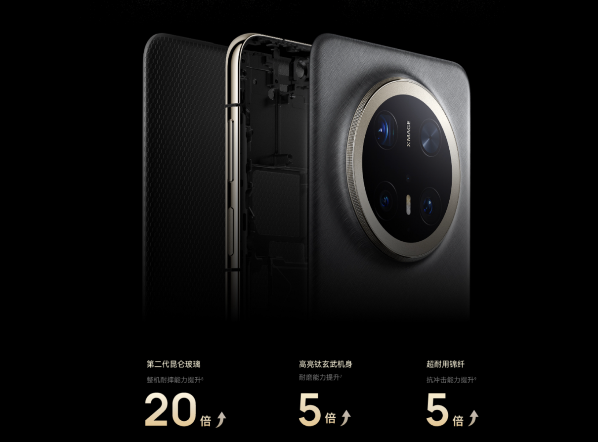 具体来看,华为Mate 70 Pro+正面采用第二代昆仑玻璃,耐摔能力整整提升了20倍;还有业界首发高亮钛中框,不仅带来了如名表般的深邃质感,更将耐磨性提升了5倍;配合后盖板采用的超耐用锦纤材质,整机可靠性表现十分突出。这种“金刚不坏”的底气,让华为Mate 70系列在拥有顶级审美价值的同时,具备了超越同级的实用性。
