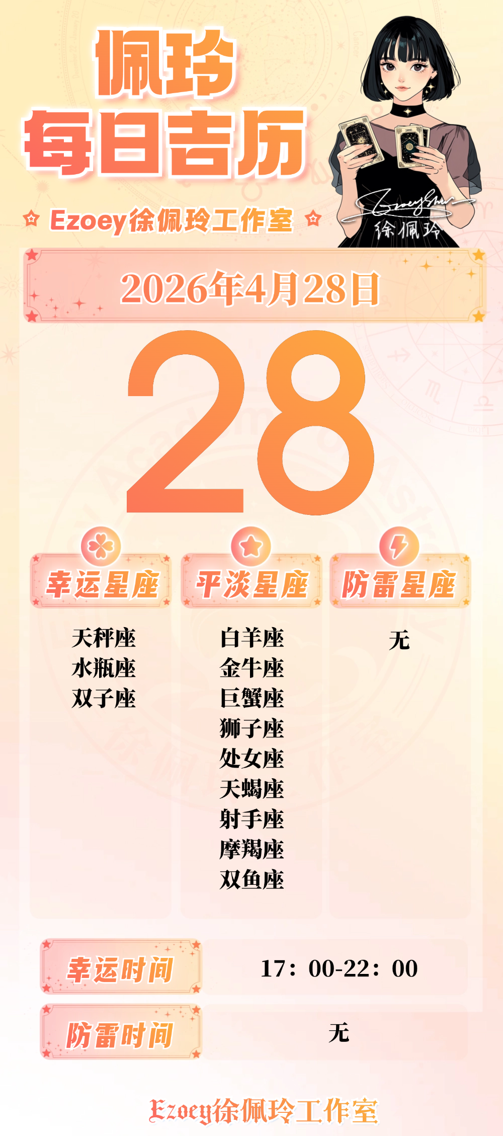 【4.28日播报】平衡人际日 幸运星星:天秤座、水瓶座、双子座——Ezoey徐佩玲26年星座播报