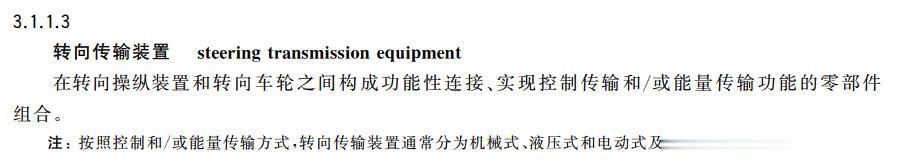 在以前,我们会把转向系统里的机械结构,叫做“转向转动装置”,而在新国标里呢,这个词升级为了“转向传输装置”。