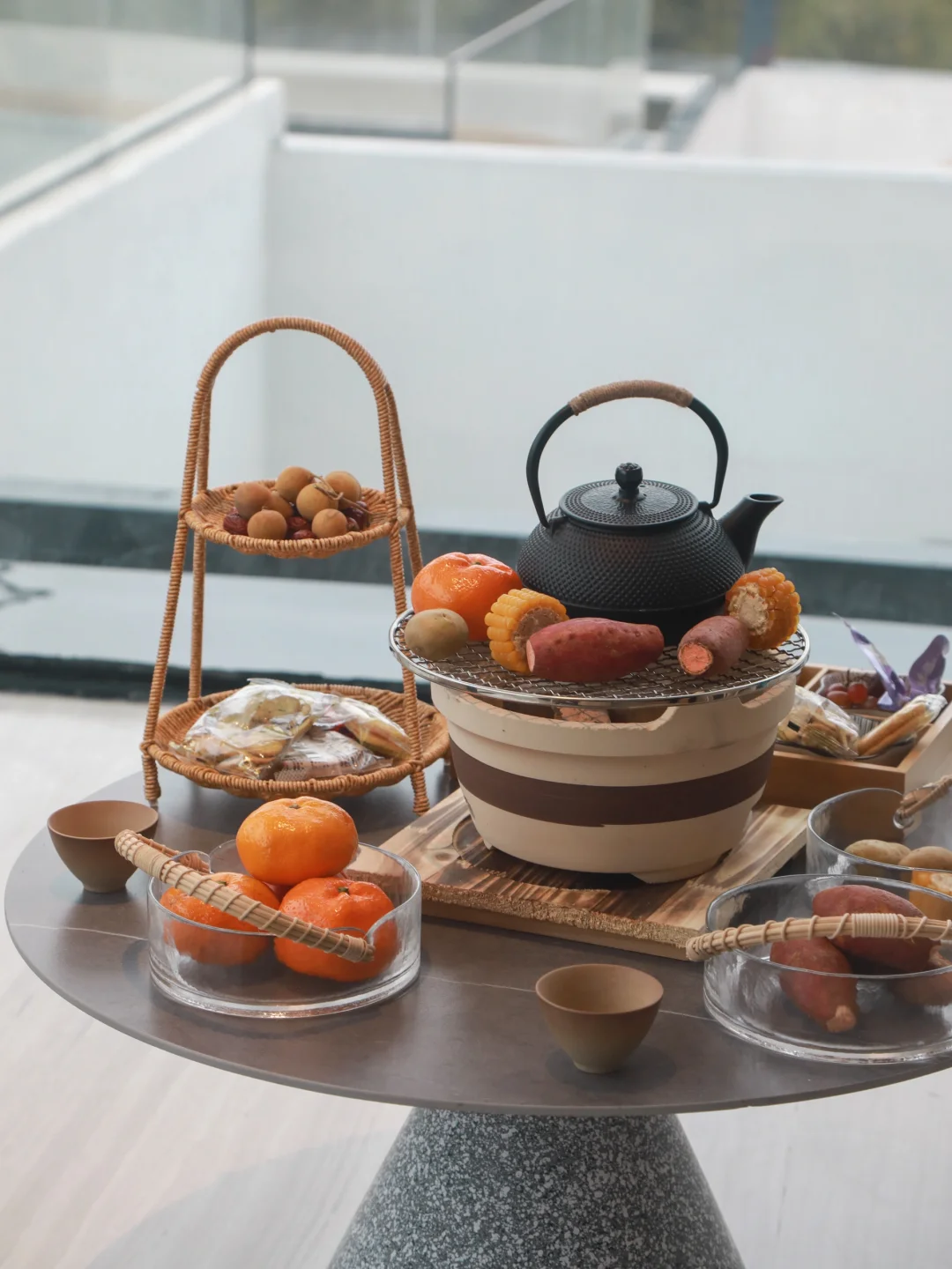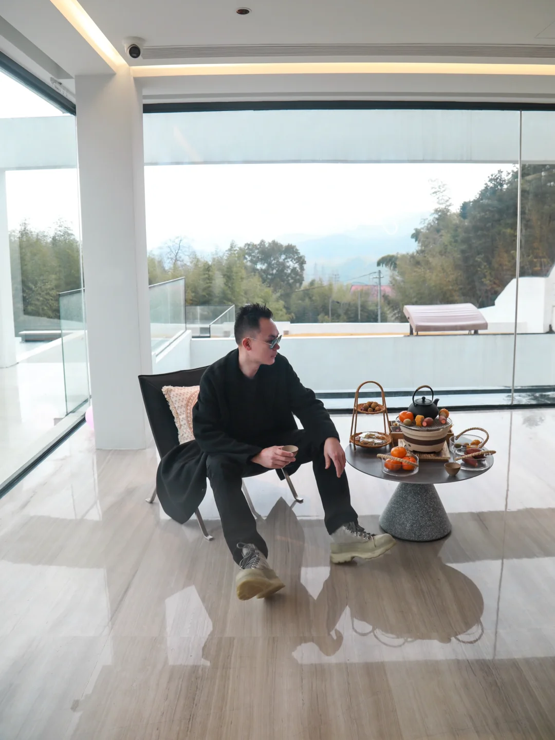 4️⃣也可以点一份围炉煮茶,看着远处的山岚美景,享受慢时光的惬意!