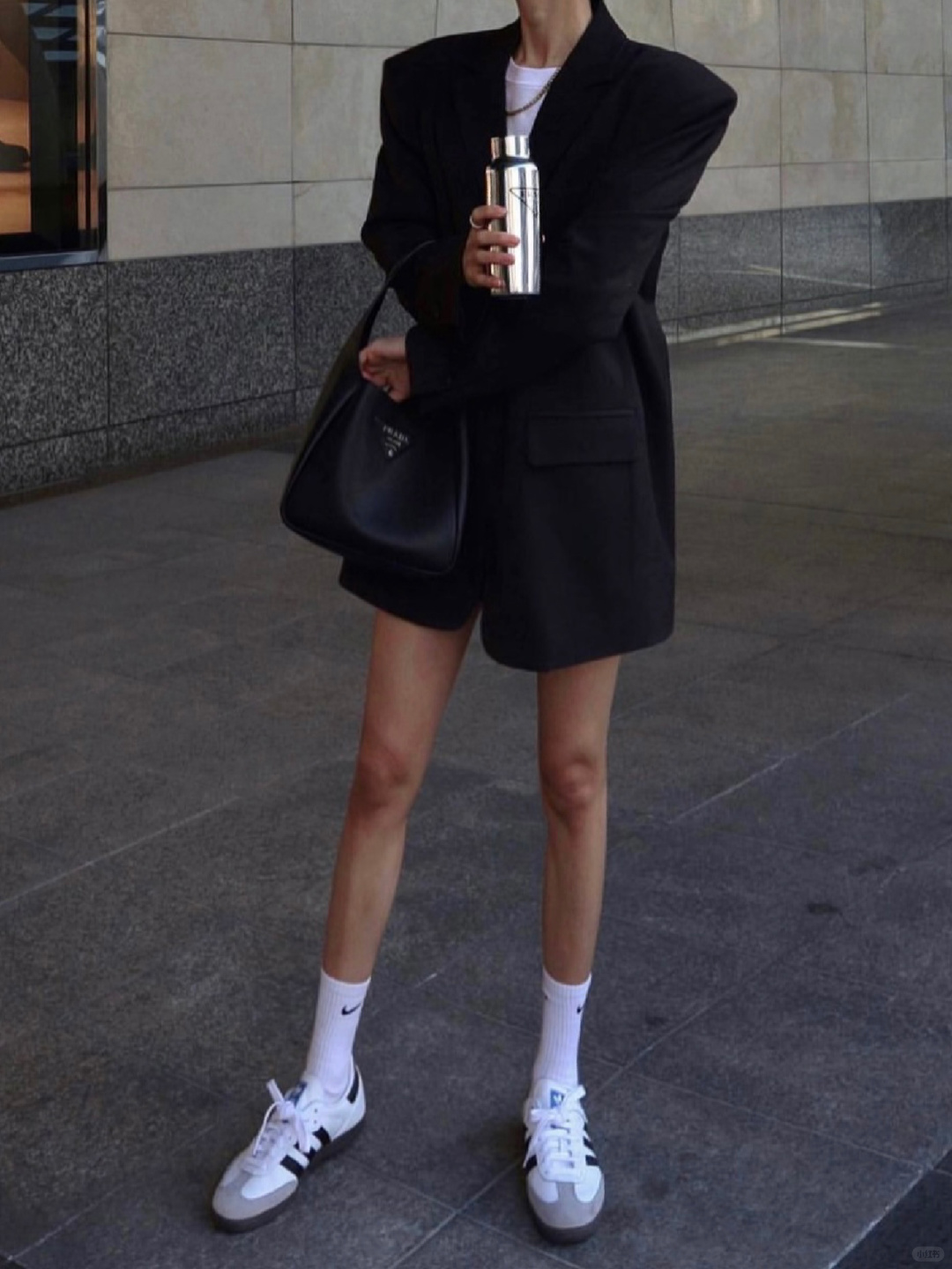 显瘦穿搭|西装➕骑行裤✅早春美式复古高级感 早春显瘦穿搭我悟了!!! 黑色西装外套➕五分瑜伽裤,视觉显瘦10斤🆘 垫肩款男友风宽松西装外套修饰头肩比 五分骑行裤包裹大腿,忒会藏肉💯 早春这样穿,妥妥拿捏美式复古高级感