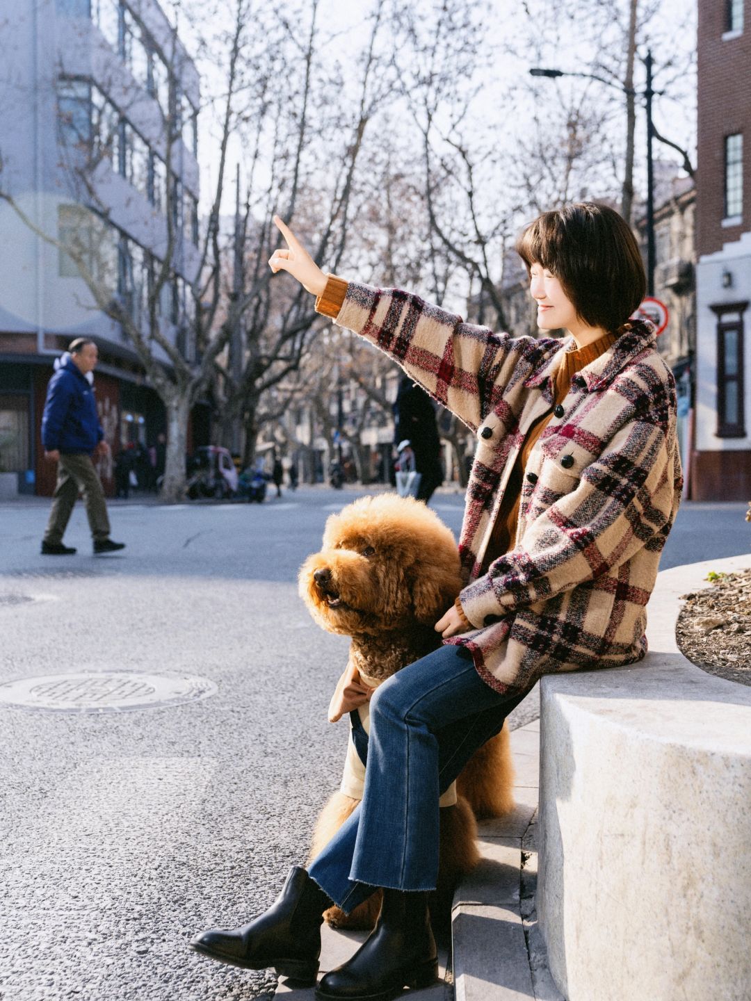 坐着拍就好,因为我们是家人啊 在一个冬日暖阳的午后,我带着摩卡来到了南昌路,这是一条有着独特海派烟火气的百年马路,细碎的阳光透过斑驳的树叶照射在老建筑上,我们挨着坐在街边,静静的微笑,一二三,咔嚓,拍了一张朴实无华岁月静好的全家福。摄影小哥哥超级喜欢狗狗,帮我们拍了好多动态照片和ninjia妹妹的合影,感谢!
