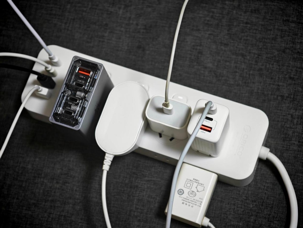 接口数量多本身并不稀奇,但能不能同时用,才是真正影响体验的地方。小胖条的八个交流电插孔在同时使用时基本互不影响,再加上尾部还集成了 4 个 USB 接口,包含 C 口和 A 口,桌面上的充电逻辑会变得很清晰。像手机、蓝牙耳机、智能手表这些小设备,直接走 USB,不再占用交流插孔,插排上能明显少掉几个充电头,桌面也跟着干净不少。我用的是 15.5W 的版本,功率不算高,但日常充这些小设备完全够用,胜在方便和稳定。现在基本是大功率设备固定插着,小设备随用随充,各自有各自的位置,不会互相挤占资源。