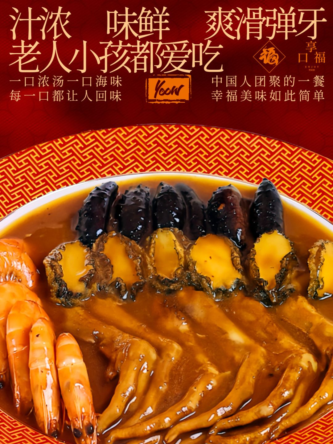 新鲜12小时梯度变温熬制的鲍汁+摆盘,超低温速冻锁住鲜顺丰冷运急速发出,家中20分钟还原现烹口感。 封面是顾客蒸箱加热的出锅图,鲍鱼海参大虾鸭爪被汤汁包裹,底下宝藏捞捞有小时候的鱼蛋,花胶块,鹰嘴豆等等~乐趣无穷,惊喜多多!