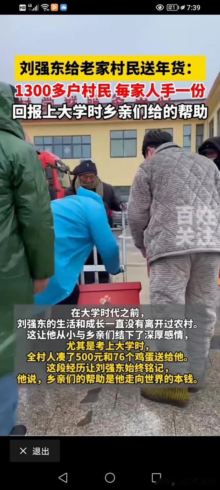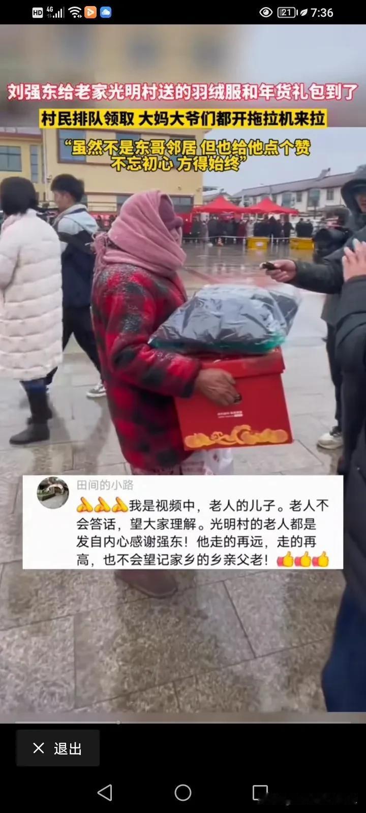 刘强东老家的村民知道刘强东给他们发年货了,所以早早就在派放地点等候,这次刘强东没有直接发钱确实是个明智之举,刘强东这一次给1300多户村民的东西也不便宜!羽绒服是波司登,大礼包也是大品牌,可以说,东西考虑的很周到,羽绒服和年货大礼包,有吃有喝的,有穿的,非常的贴心! 东哥在大学的时候得到过乡亲们的帮助,当时全村人凑了500块钱和76个鸡蛋给他,现在他发达了,每年都会给乡亲们送去过年大礼包。 2015年的时候,他和妻子回老家是给650多名60岁的老人一人一万块钱的红包,2018年的时候,那是800多户,鸡鸭鱼肉,家电生活用品,现在是1300多户,人人有份,我觉得这样子分配就不会眼红了吧?今年应该不会再往他家里泼油漆了吧? #天南地北大拜年# #我来唠家常#