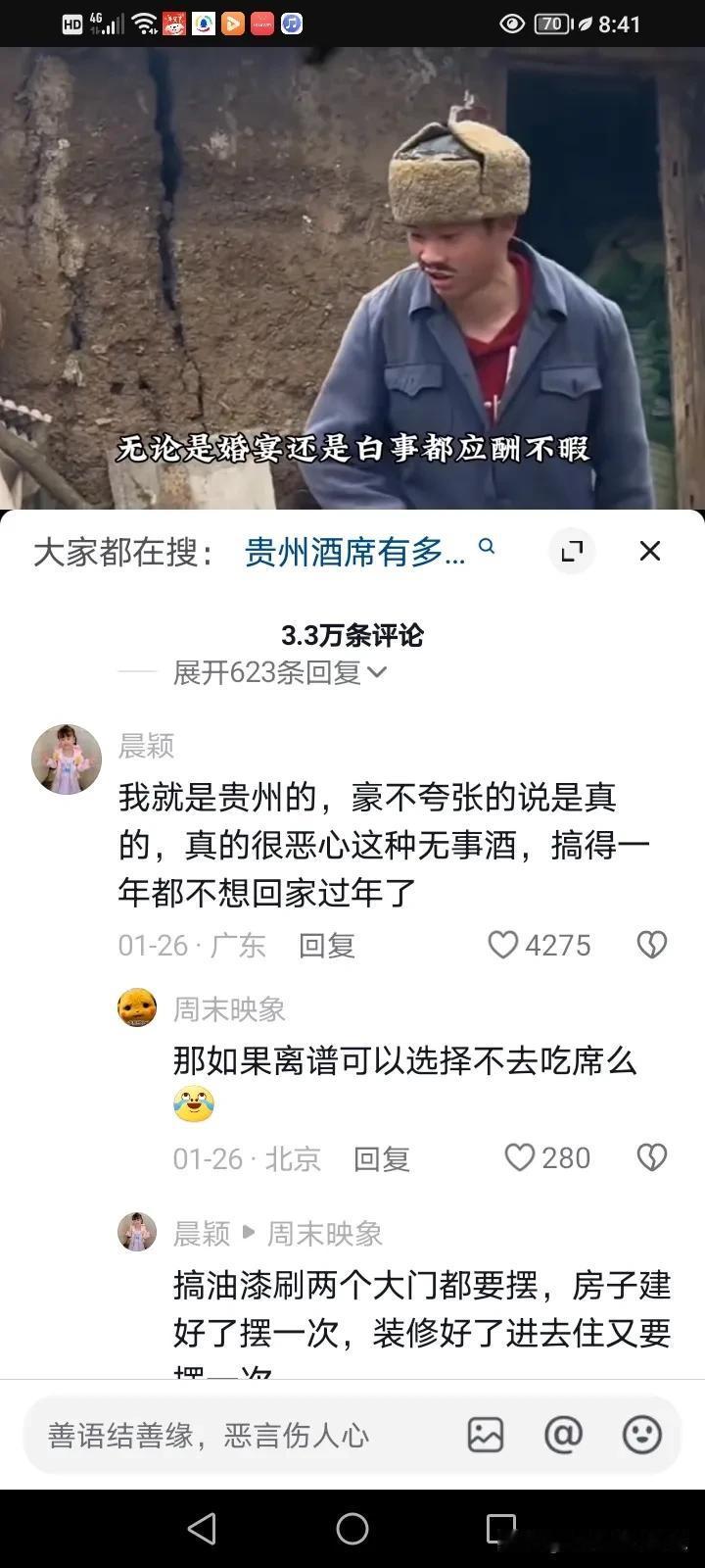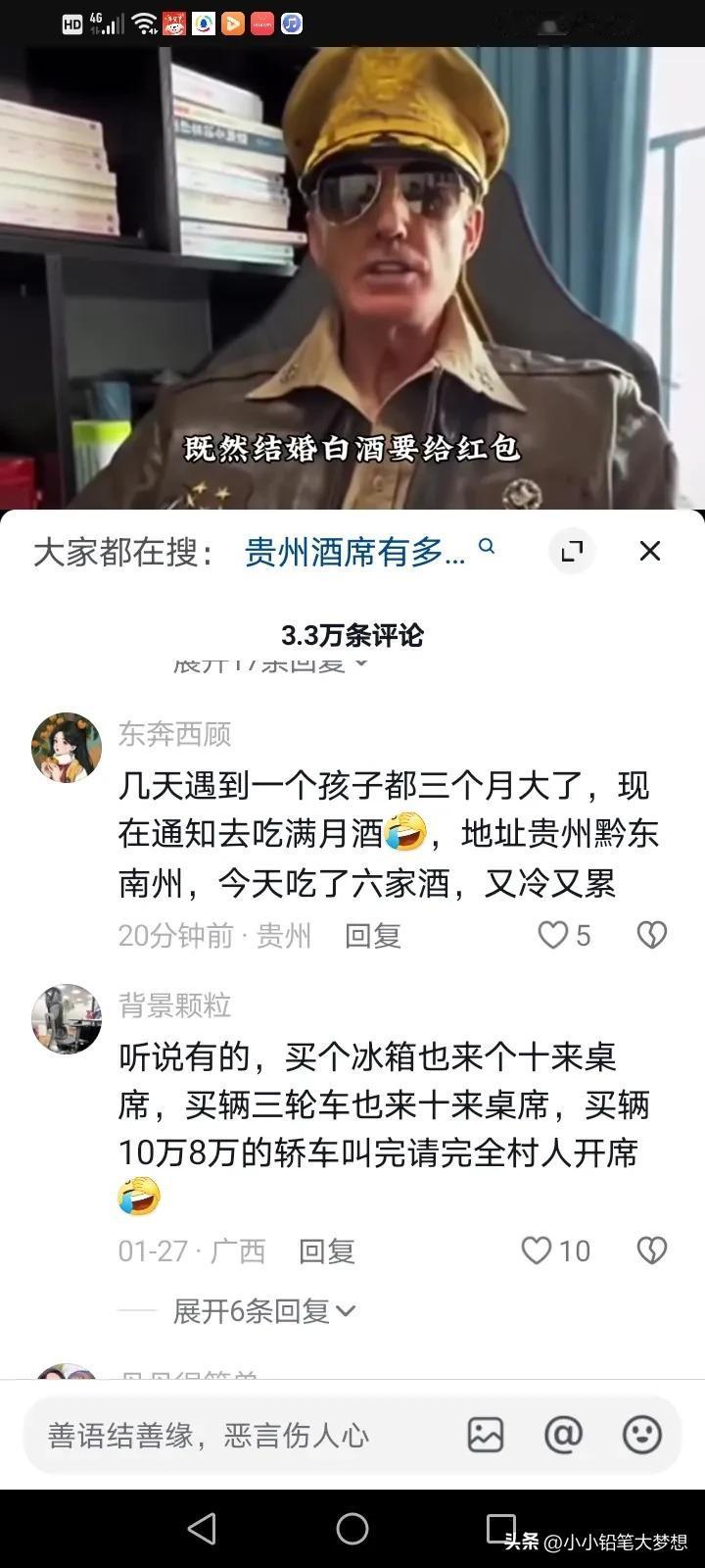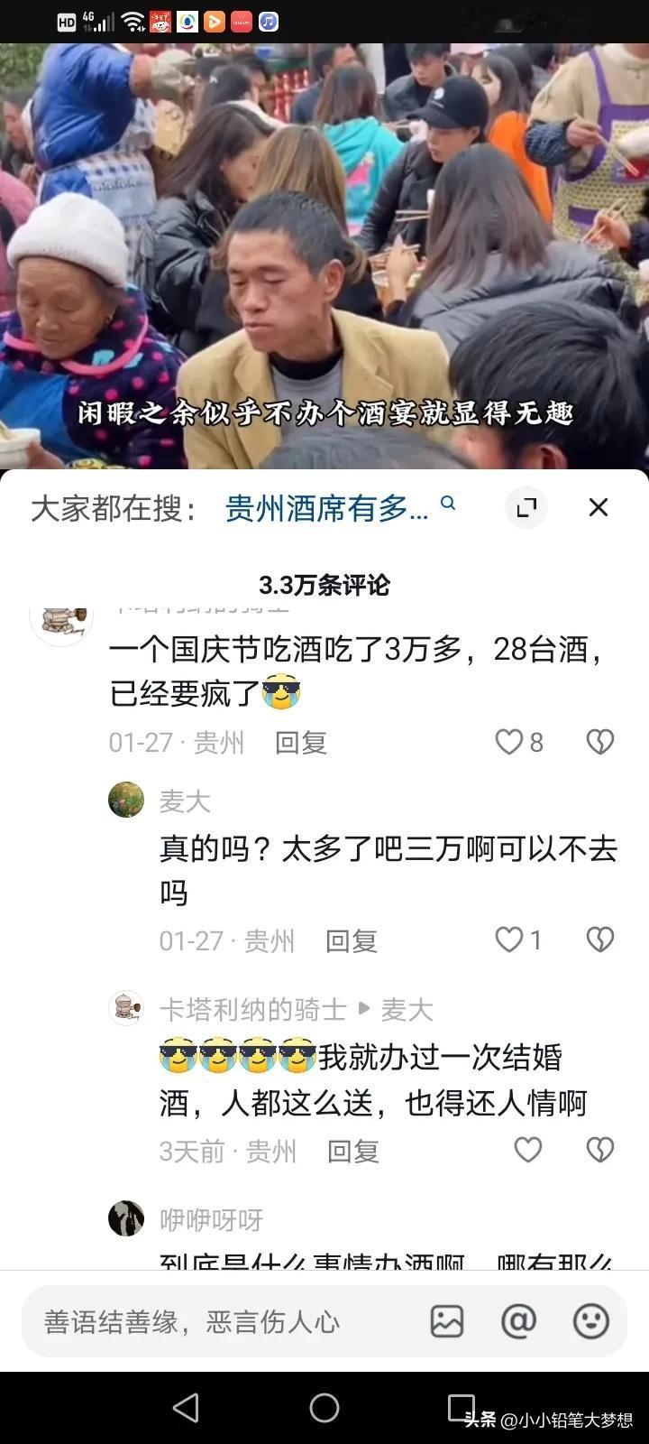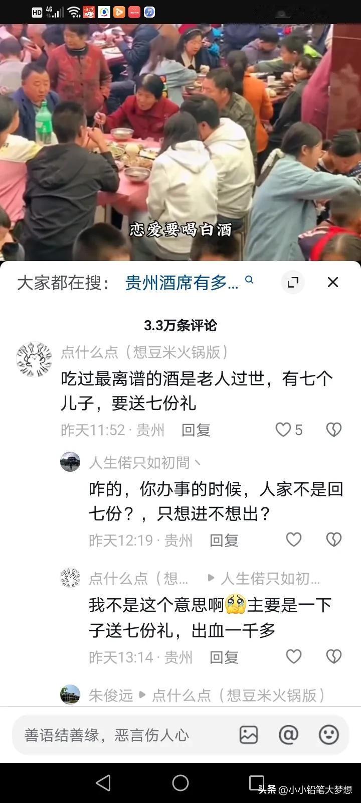 贵州一户人家办酒,工作人员过来在食物上撒盐,原来他们家是办的剃头酒,在当地,三令五申不能借摆酒来敛财,剃头酒,出院酒,迁坟酒,更甚至猪儿入圈,买了辆车,买个冰箱,从一层搬到二层,从二层搬到三层,在贵州都可以作为办酒的理由! 而且他们办酒不是说一户就出一份礼,离谱的如果是家里老人过世了,有8个儿子就要送8份礼,儿子们是各收各的礼! 贵州的本地的朋友说,贵州酒席,频繁程度令人咋舌,有一个贵州的女孩说自己回家才几天,就已经吃了20多场酒,一天吃个五六家,而且这些酒席的菜也不太好,就是走个形式捞点财,政府三令五申,说不能摆,但是他们总找到理由,想办法的摆,大家都是亲戚,不去的话,遭人话柄,但这样的礼尚往来让人疲惫不堪,本来是想要回家好好休息的,回家变得更忙了,一年辛辛苦苦打工换来的钱就在这个时候被各种理由的酒席掏空了! 他们的那边的剃头酒,三岁,六岁,九岁都得办,各种奇葩也可以作为摆酒的理由,所以很多年轻人都觉得很离谱,过年了,也不想回家了。 所以对于工作人员撒盐这个行为,可能在很多人眼里觉得太可怕了,更甚至有人吐槽是什么样的人才能干出这样的行为?简直浪费食材,首先我想说的是政府干预的出发点是好的,因为这样的风气实在是不好,但是我知道基层的工作是最难做。 做法虽然有点不恰当,但他们为什么这么做?我想也有点迫不得已了吧!不狠一点,是得不到效果的,村民们还会想尽办法的以各种理由来捞钱。 办酒的初衷只是大家过来热闹热闹,然后给点祝福的分子钱,但如今却变成了捞钱的一种方式,确实是应该抵制啊!
