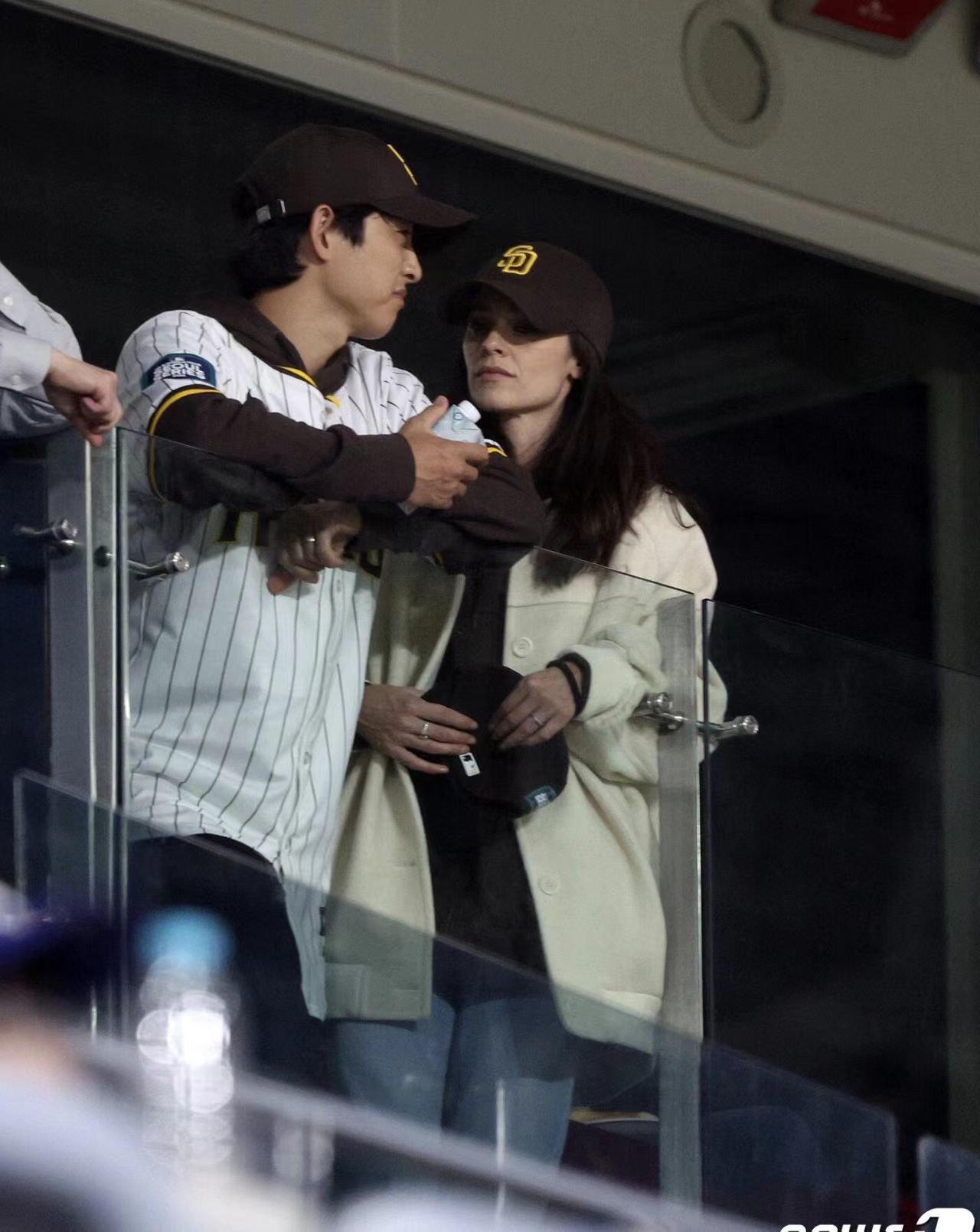 看得出来凯蒂对棒球比赛不太了解,宋钟基耐心的跟她讲解。他们的爱意溢于言表,同时也看的出来他们的婚后生活很幸福。