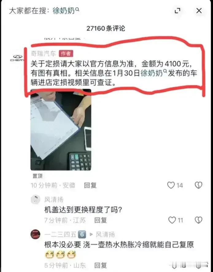这泼天的富贵奇瑞汽车还是接下了,网上疯传的定损5200,奇瑞汽车晒单据4100,但是这并没有让广大网友偃旗息鼓,随着更多细节的暴露,奇瑞汽车直播间骂声一片。作为企业,利用热点事件搞销售炒作是需要谨慎的,一旦翻车,想要维护公司的形象付出的代价会很高,奇瑞汽车是懂营销的,但是站队需谨慎点啊