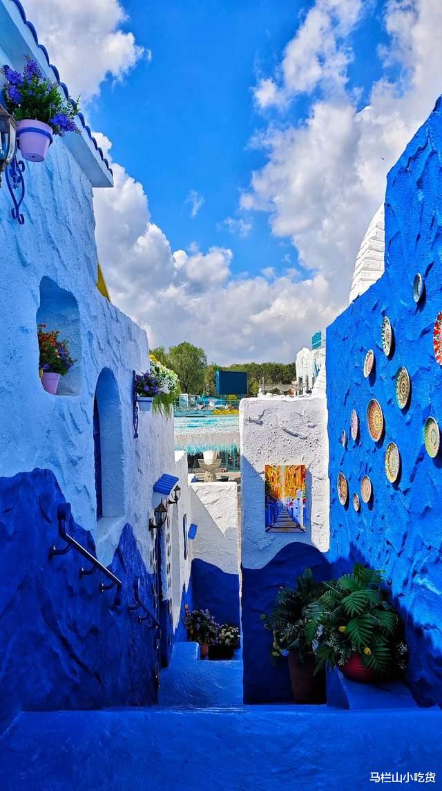 摩洛哥蓝白小镇:东门入口处的蓝台阶转角,穿上白色长裙,轻松拍出异域风情大片。
