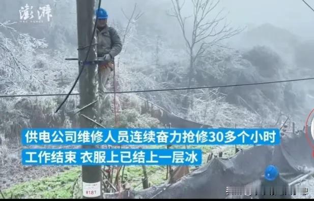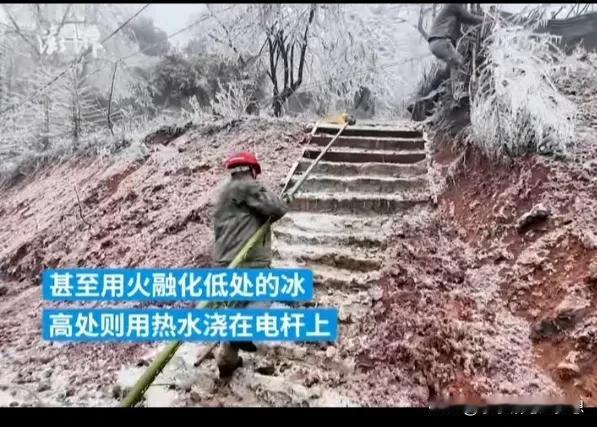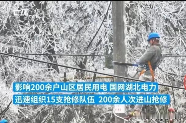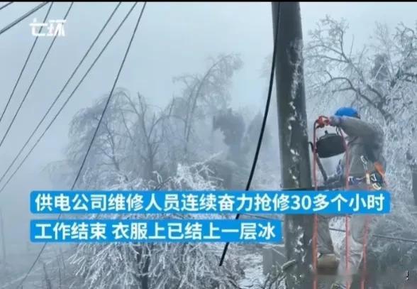 网友在网上吐槽,湖北村里已经停水停电三天了,没水、没电、没网,进出不能,好像回到了原始社会,村里面也没有什么食物了,这个年怎么过? 我不知道这位网友看到这些电力工人这么努力的在抢修的时候还会抱怨吗? 这两天湖北的冻雨天气造成了高速大塞车,很多人被困了三天,动弹不得,有人还在抖音里面求助,甚至崩溃,还担心可能出不去,庆幸的是,我们生活在大中国,中国人非常团结,一方有难,多方支援! 隔壁省的河南人民来到了湖北,帮忙除雪,人民子弟兵也已经来支援了,大部分堵在高速的都已经下了高速了,当然高速费是免的。 但是通电方面确实有点难,冻雨压断了不少高低压低电线,单位部门已经第一时间进行抢修,因为结冰非常严重,危险性比较高,这要专业的电力工人才能操作,电线杆滑溜溜他们要爬上电线杆去处理压断的电线,所以要一条一条电线杆去剥冰,他们用热水烫,用凿刀凿开,用火烧,真的太难,他们连续工作了30多个小时,下来的时候身上也结了一层冰。 所以希望这样恶劣天气,大家能理解一下,向人民子弟兵致敬,说一声你们辛苦了,致敬抗灾一线的同志们,希望湖北早日恢复正常! #天南地北大拜年# #评论区出主意大赛#