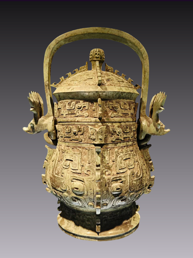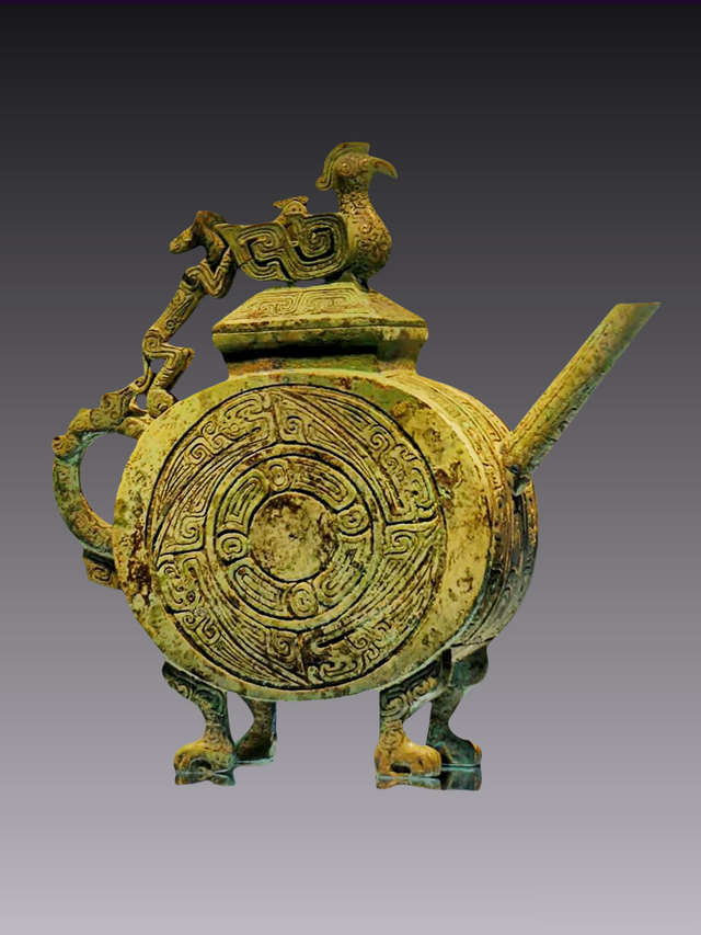 西周应侯壶,这一对铜壶铸造于距今2800年前的西周晚期。通高55厘米,胎体厚实,工艺精美而又十分气派,为难得的西周青铜重器。壶上有大圈顶的盖,盖面中心装饰有一只团身飞舞的凤鸟。壶身装饰双线条的波纹,虽相对简洁但雄浑有力,颇具气势。 器盖与器身均铸有13字铭文:「应侯乍(作)旅壶,其万年永宝用」,表明它们的主人是分布在今天河南平顶山一带的诸侯国——应国的国君。当年,周武王灭商后大封诸侯,把他的一个儿子(一说为弟弟)分封在今天的河南平顶山一带,建立了应国。应国长期拱卫周王朝,是周王朝抵挡汉水流域外族入侵的一支重要力量,与周王朝的关系十分密切。