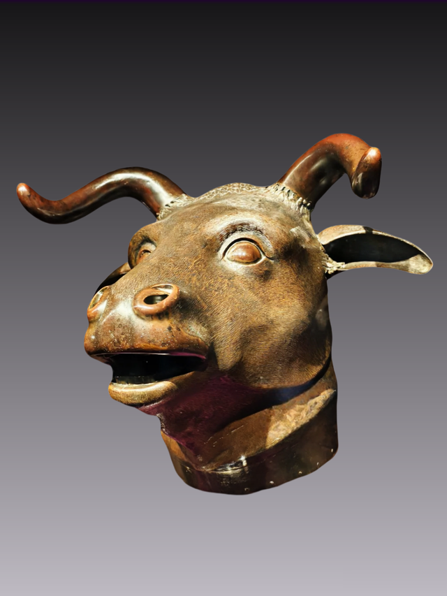 兽首铜像原为海晏堂前的水力钟构件,铸造于公元18世纪中叶的清乾隆年间。海晏堂正门外的大型喷泉池两旁呈八字形各排出6个兽首人身像,它们按十二生肖规律交错排列。铜像口中轮流喷一个时辰水柱,正午时分所有铜像一齐喷射水柱。铜像用了当时最好的合金铜精心制作,内含诸多贵重金属,颜色深沉,铸工精整,展现出极高的工艺水准;设计者是意大利传教士郎世宁等,造型带有诸多西方艺术特色,比如牛首有鲜明的西班牙斗牛风格虎首更像是西方人眼中的百兽之王狮子。