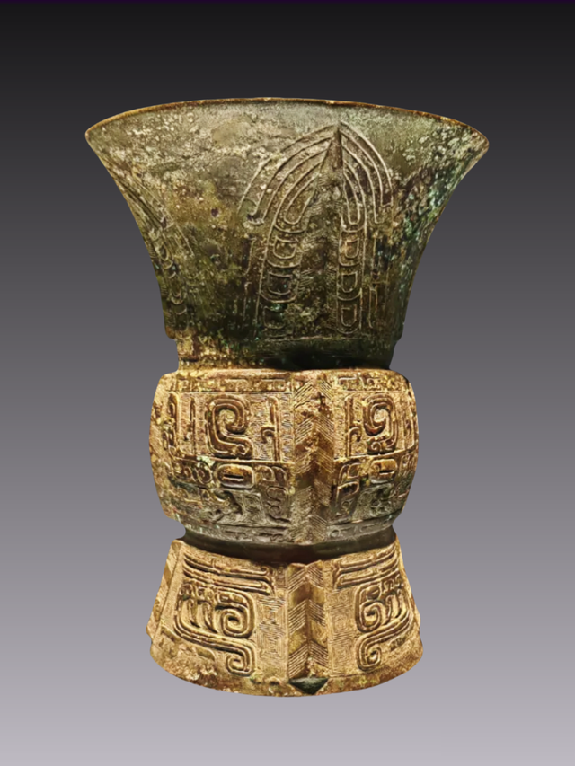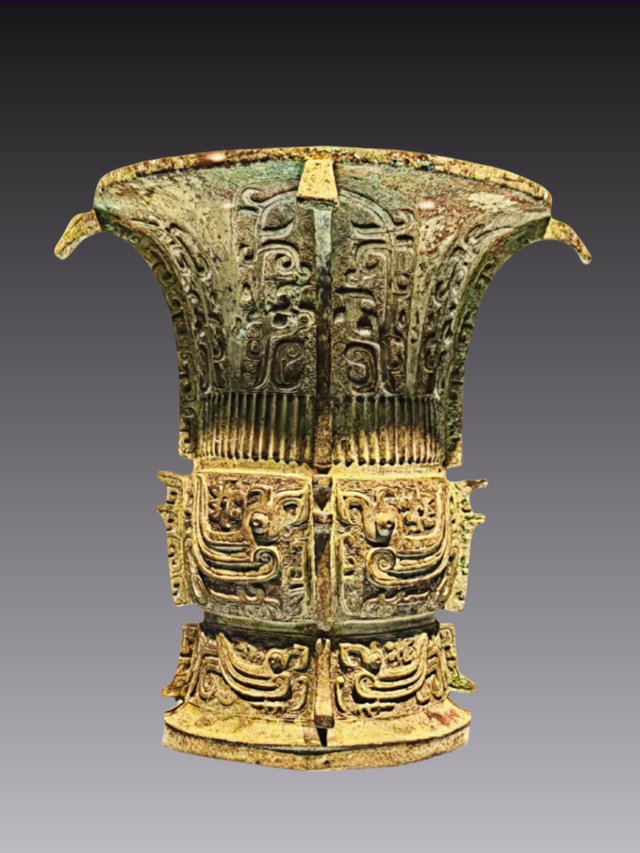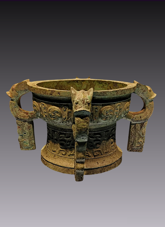 这件商代晚期铜尊,大口外侈,中部圆鼓,下接喇叭形圈足,肩部和腹部装饰有兽面纹等花纹,肩部等距离排列三个浮雕的牛首。它虽然形体较大,但造型十分规整,展现出很高的铸造工艺水平。这件铜尊据称20世纪20年代出土于河南某地,不久即被销往欧洲,一直被欧洲的青铜器学者视作公元前14世纪前后中国青铜艺术的代表作之一。2000年,保利艺术博物馆将其抢救回国。
