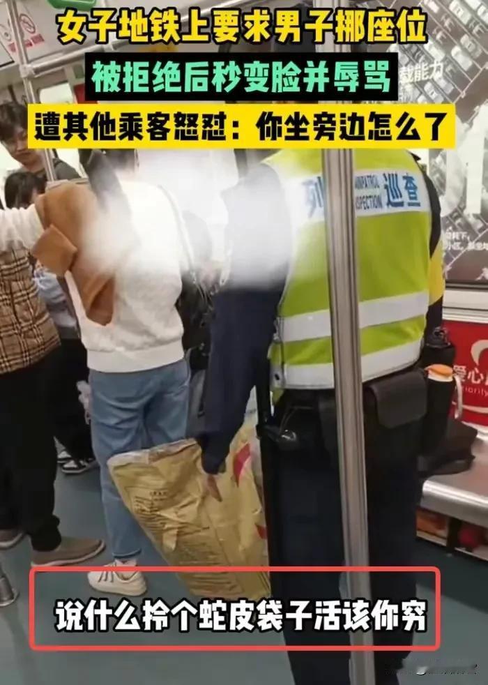 广州深圳地铁上一女子要求和农民工换位,遭到拒绝后,疯狂辱骂农民工“活该你穷。”唉,怪不得有些干活的工人坐地铁从来不坐椅子,而是坐在地上,深怕影响别人。从深圳地铁上该女子辱骂农民工的事情可以看出来农民工为城市的建设添砖加瓦可以,但是不能和像该女子一样的人同时坐地铁。真不知道该女子的优越感来自哪里?拎蛇皮袋怎么了?拎蛇皮袋就比你穷?别把自己太当回事,就你这尖酸刻薄的样子,能比别人高贵?#深圳这些奇闻# #深圳城里那些事# #上农民工上热门# #深圳地铁见闻# #聊聊让座那些事# #论地铁上的尬事# #论地铁上尬事# #打工人的心酸!# #论地铁上的尴事# #深圳市人生事#