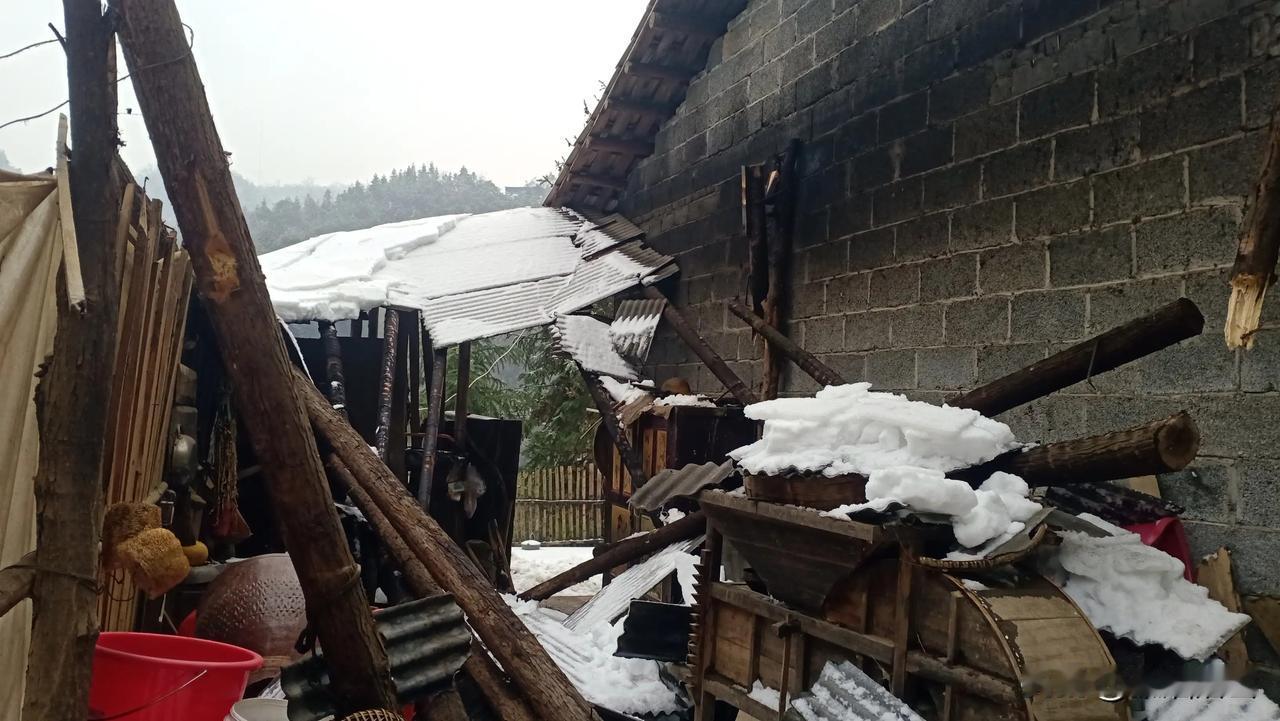 冻雨加大雪,下雪时房屋没有问题,雪融化时,好多房屋都有不同程度的损坏,今年的大雪给村民们带来了很多的损失,有的屋顶装的太阳能热水器也在融雪时滑落,特别是那些搭建的棚屋,基本上都在这次雪灾受损,幸亏无人员伤亡,愿来年风调雨顺,幸福安康!#这么大的雪灾# #房子被雪压坏了# #大雪天灾难# #冻雨雪灾# #雪融化得太快# #自然灾害冻雨#