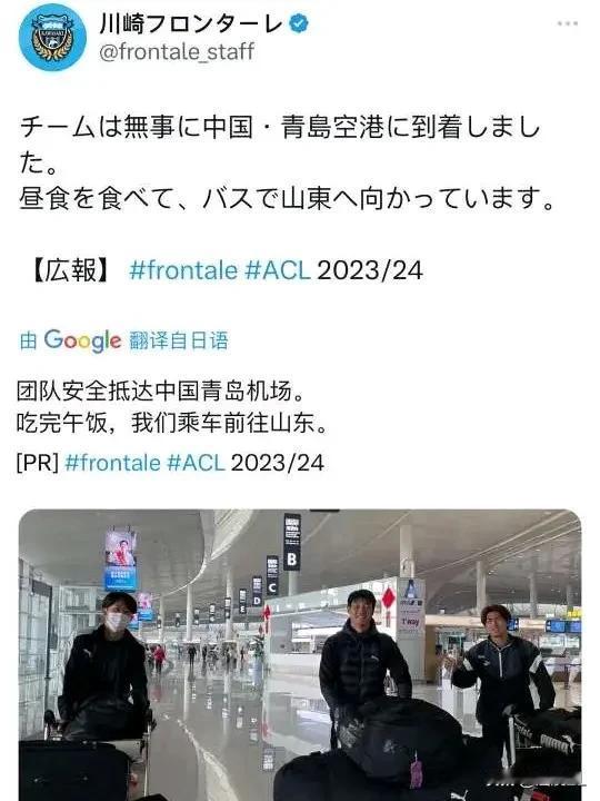 挑衅!小日子真不会说话,泰山队亚冠淘汰赛对手川崎前锋已来到中国,并且通过社媒发文:“球队已经抵达中国青岛,午饭过后我们将前往山东。”