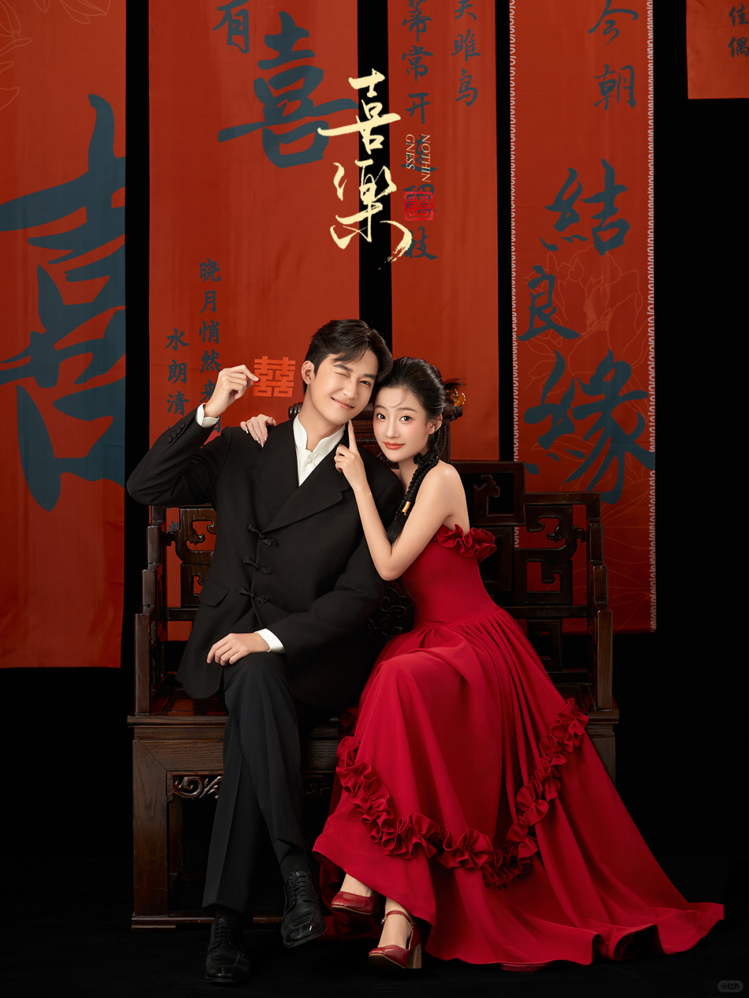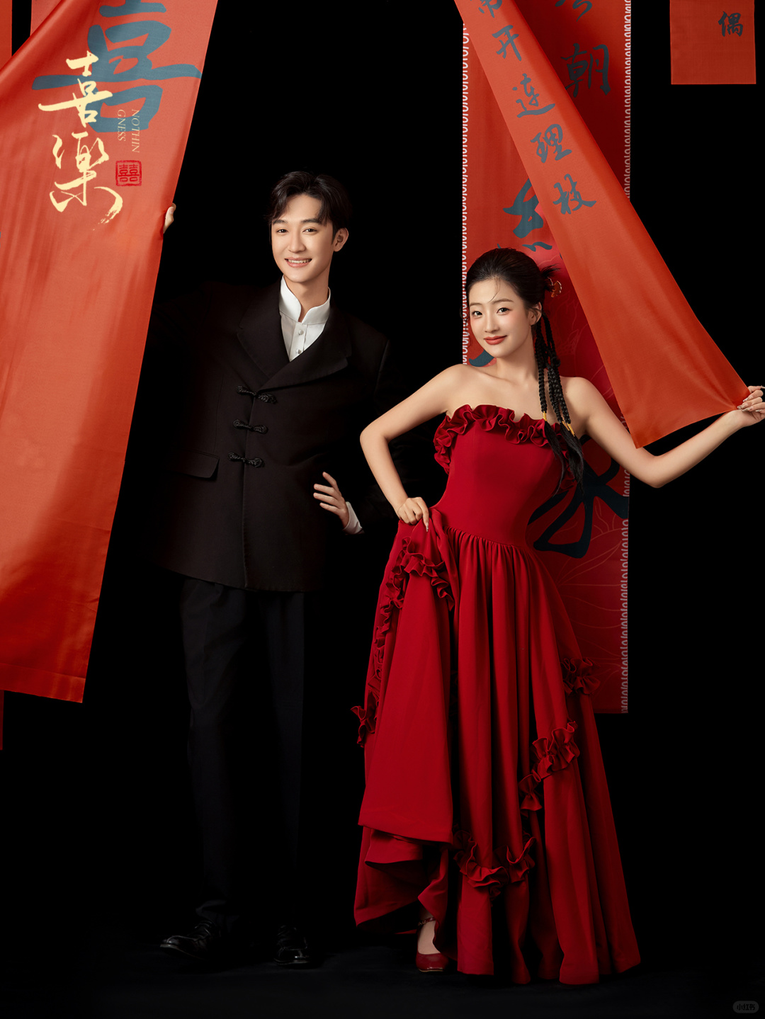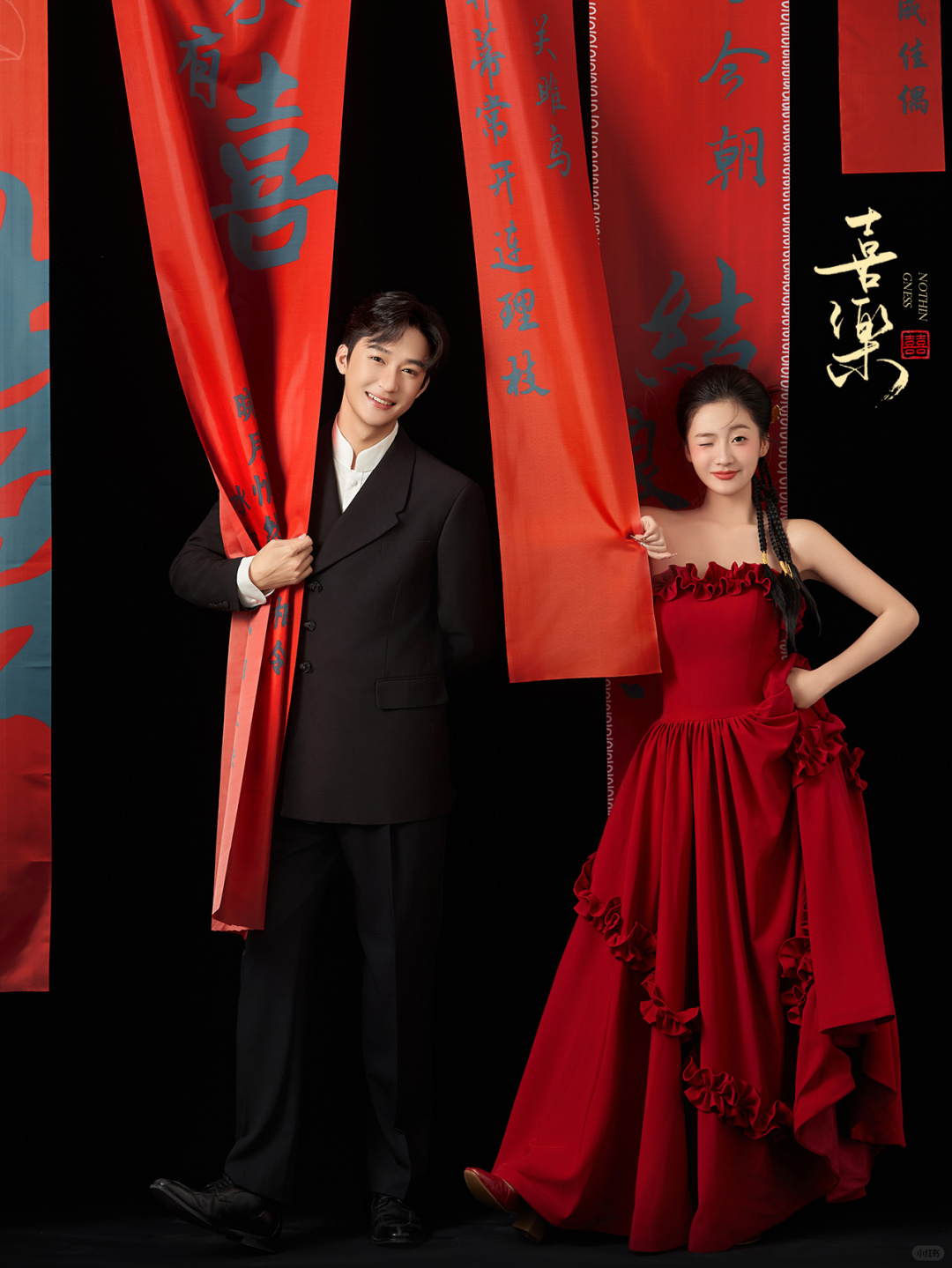 拍摄: @今生有约 风格:喜嫁|新中式|国风 <今生有约·2024开年全新原创研发> / ◾只能说新中式尊嘟赢很大💯 红色抹胸长裙搭配新中式千禧编发 既精致又🈶️传统韵味 融入喜庆对联龙头灯笼🏮双喜剪纸等元素 创新出年轻化、多元化的风格 / 赤色与黑色碰撞出cp感 给予强烈的视觉体验❤️ 那些藏在眼角眉梢的浓情蜜意❤️ 如同一坛陈酿,越久越淳 自然互动❣这波我先嗑了