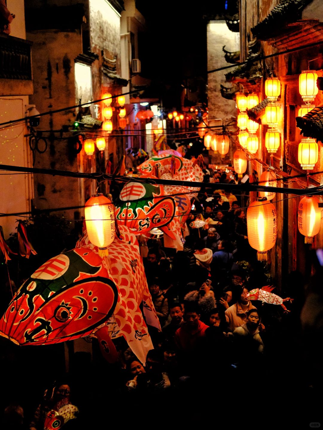 为什么强烈推荐来瞻淇村体验地道鱼灯会❓ 1️⃣时间稳定且日期跨度长 举村欢庆八百年来 非暴雨恶劣天气 每年初二到元宵节后 晚上六时准时开始 固定游鱼龙线路更有序 2️⃣交通便利 导航🧭瞻淇村中心小学 高速公路下来便是村子 无任何山路 对担心自驾开夜路特别友好 从歙县县城或者🚄黄山北高铁站乘坐🚌或者🚖均可抵达 比前往汪满田村要方便得多