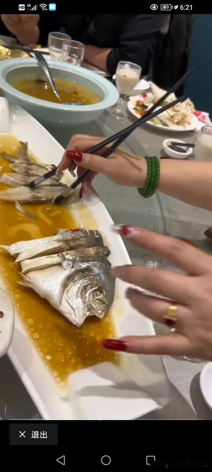 “兄弟们,我们点的鱼少了,怎么办?”一位大姐带着全家老少,春节在外面吃饭,他们点了一条鱼,当商家把鱼蒸好之后端上来,她发现这条鱼不对劲。 长长的盘子,这条鱼却被切块横着放在盘子里,大姐数了一下鱼块,感觉不对,他觉得商家肯定是在鱼身上动手脚了,鱼被切开之后偷走了一部分。 所以她重新又把鱼给拼成了一条,然后说,你看“我就说少了嘛,这鱼就这么点长,我们被骗了!” 看着大姐珠光宝气的双手在那里夹来夹去,我突然觉得有点无语,我想说,大姐,这真没法喷,这真的是常识问题。[捂脸] #寻找家乡龙年味道# #我来唠家常#