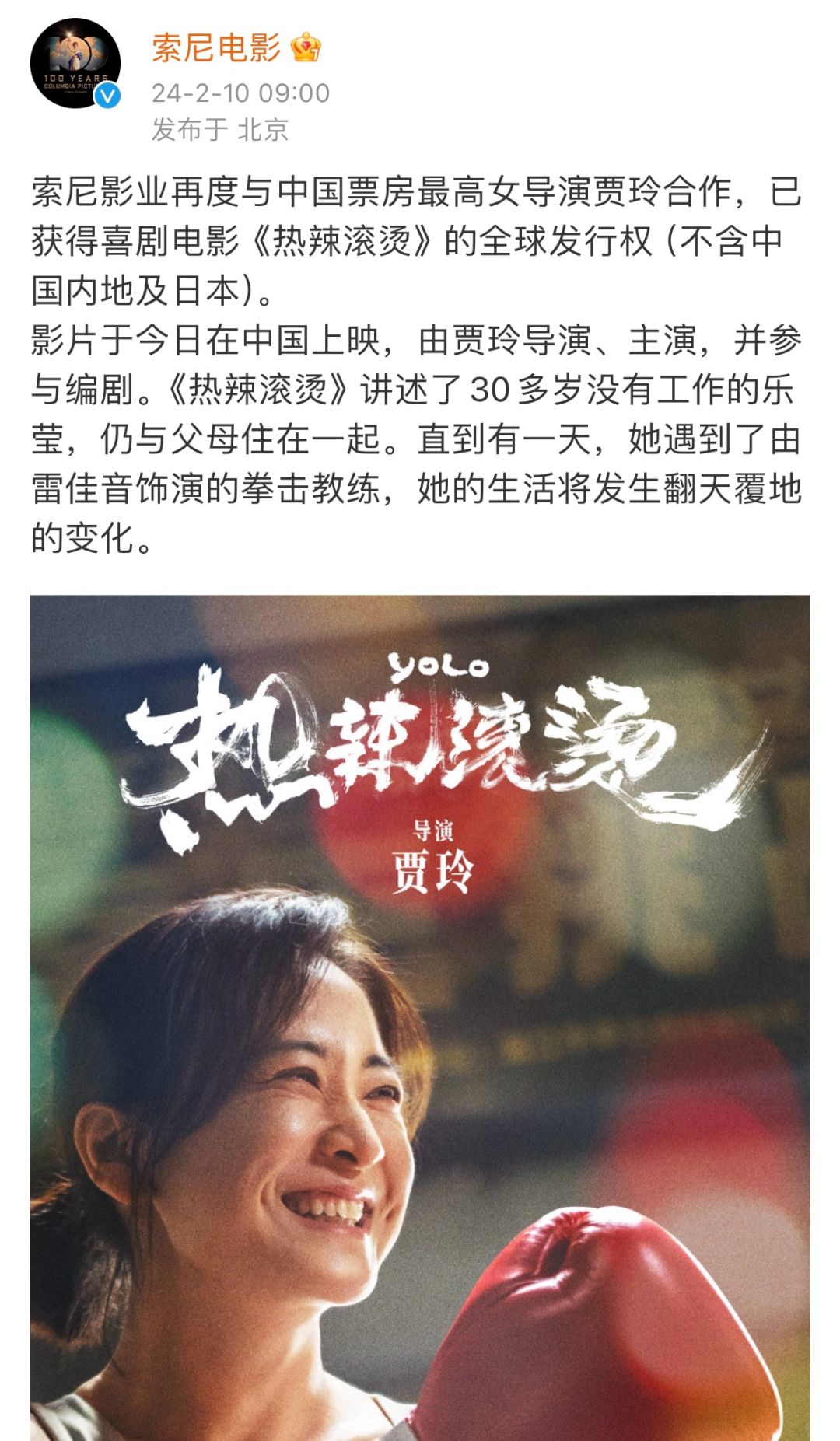 🌷从之前的《你好李焕英》被好莱坞翻拍,到现在的《热辣滚烫》被索尼购买全球发行权,真的能感受到这个电影背后所有人的付出正在被看见,作为全球高票房女导演之一,我发自内心的为她感到骄傲,相信贾玲,一定会为大家带来优秀的作品,回馈一直爱她支持她的观众。