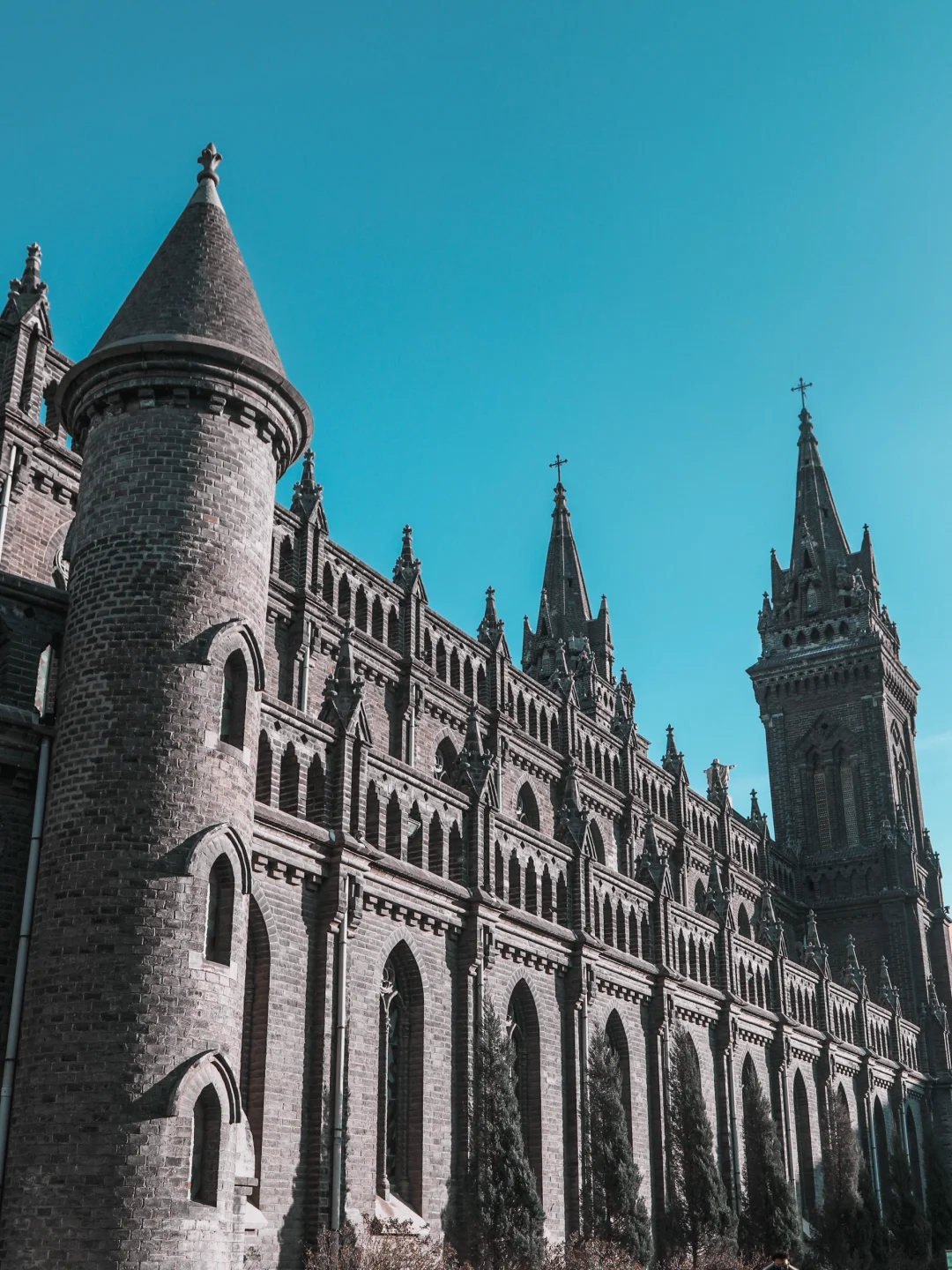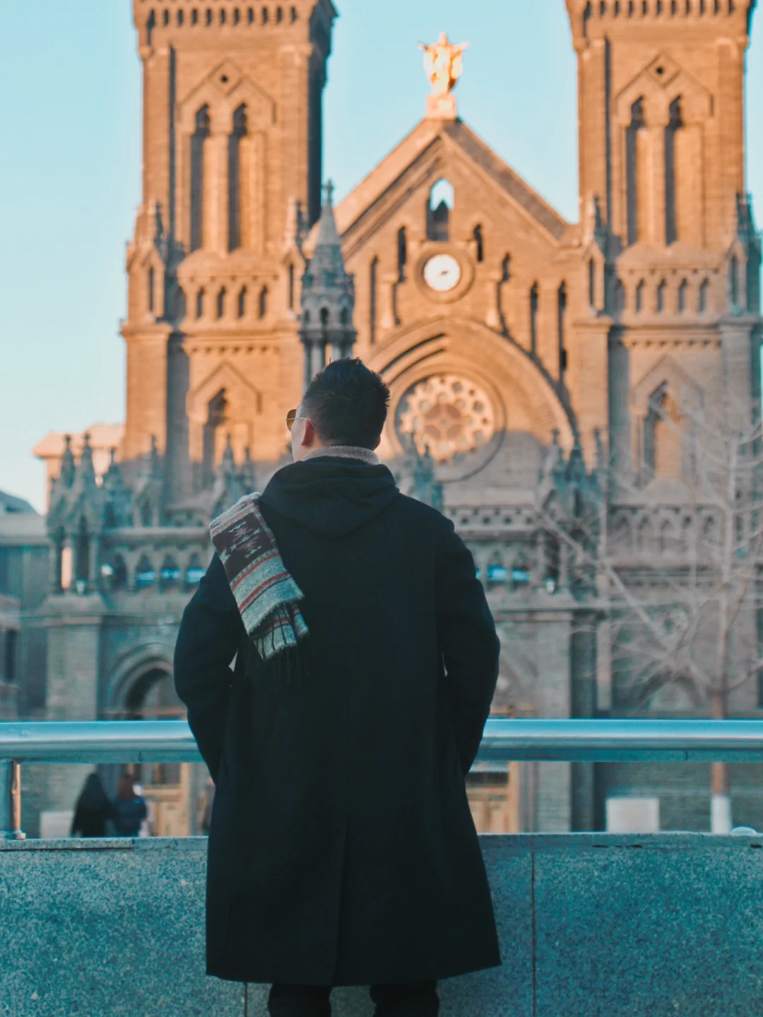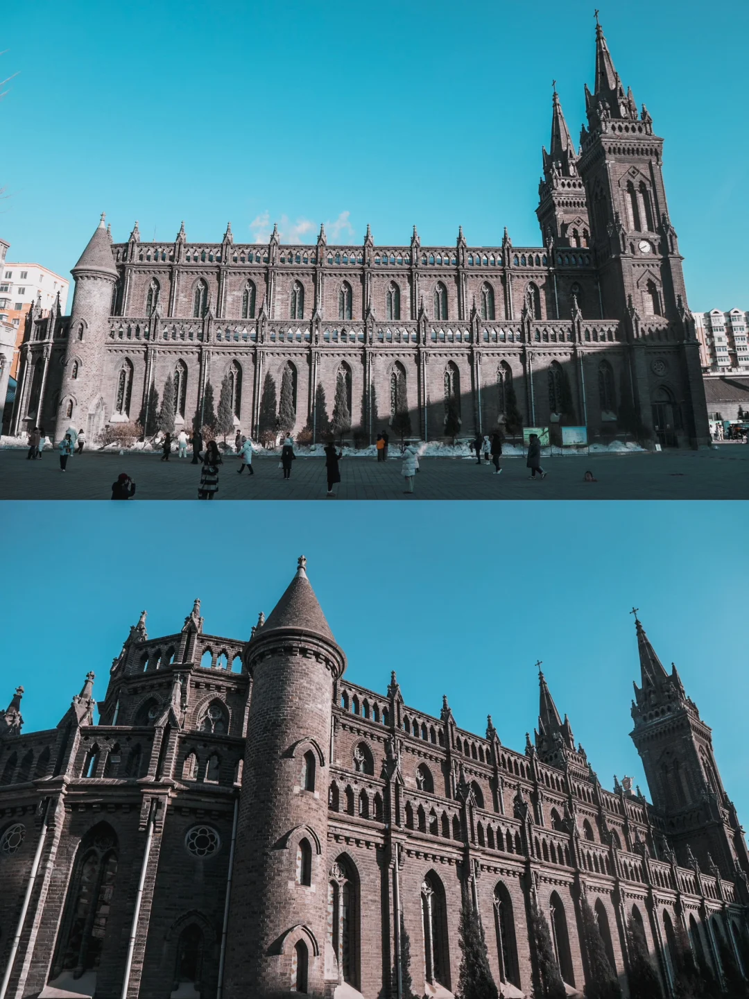 6️⃣在教堂广场,用广角仰拍教堂侧面的整个建筑,也很大气出片。
