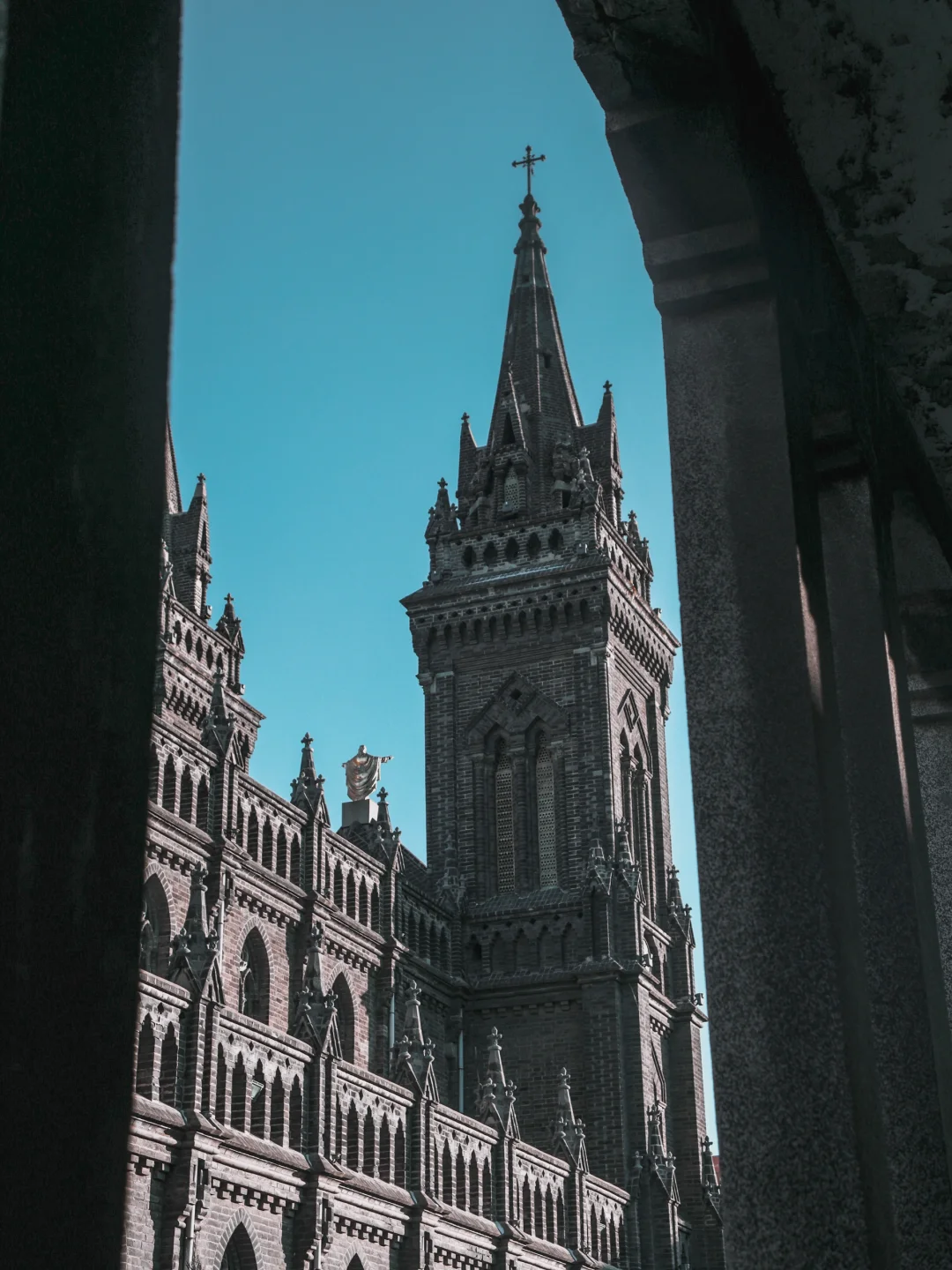 5️⃣从旁边建筑的门廊穿过来拍教堂。形成门框构图也不错。