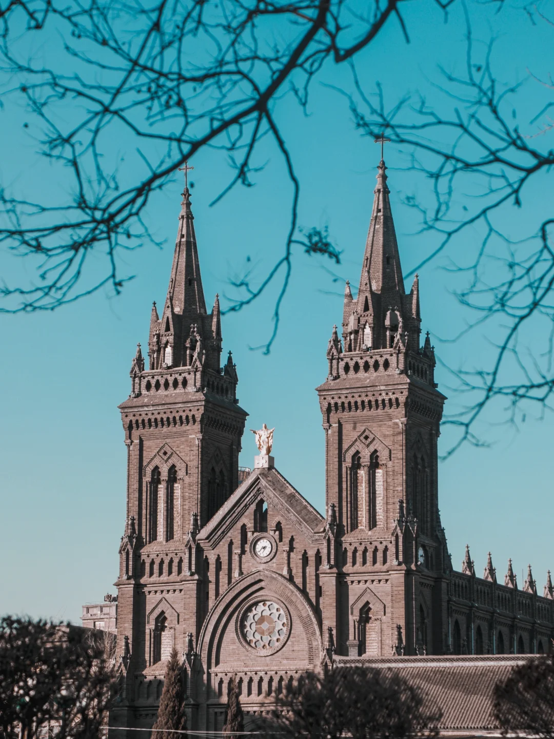 2️⃣广场上找树木作为前景拍教堂也很出片。