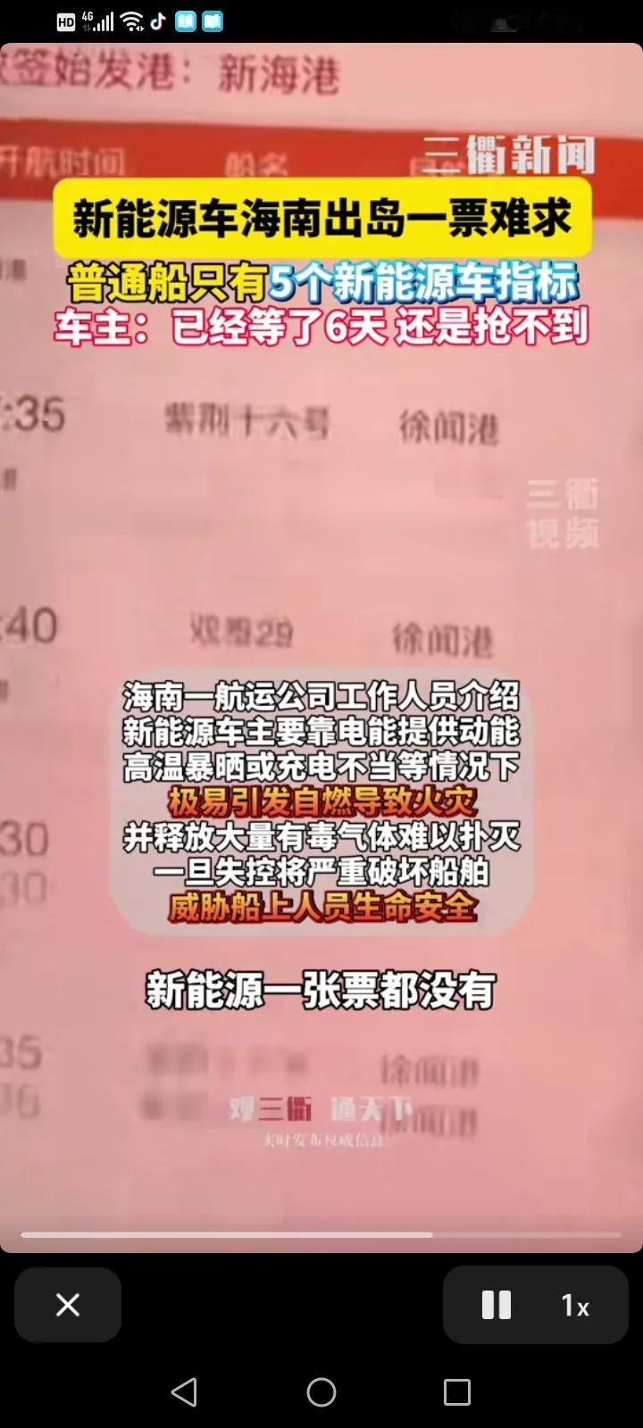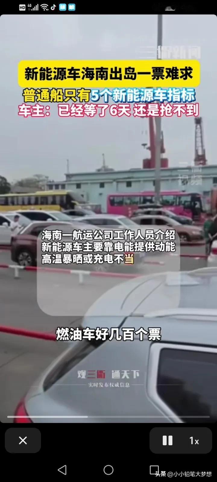 谁说新能源汽车每艘渡轮只有5个名额?原来换个方式,换个套路,新能源汽车也集堆,今天从徐闻港回来,刷新了我的认知,所谓的新能源车只有5个名额,没错,船头船尾确实停放了少量的新能源车,但是我看到了,中间的大拖车上拖的全都是新能源汽车! 我不知道这些新能源汽车是怎么算,是不是在大拖车上就不占用新能源车的数量? 那之前对外报道,之所以给这么少的名额,是出于安全着想,怕引起火灾,这样放就不怕火灾了?是不是矛盾了呢? 出于好奇,我就想问一下一位大哥,他的新能源汽车拖回来是需要多少钱? 他告诉我,他拖的时候是4800,但是听说现在一万块也没有名额了。 真的是颠覆了我的认知,这新能源汽车个个都是大佬级的! #我来唠家常# #记录我的2024#
